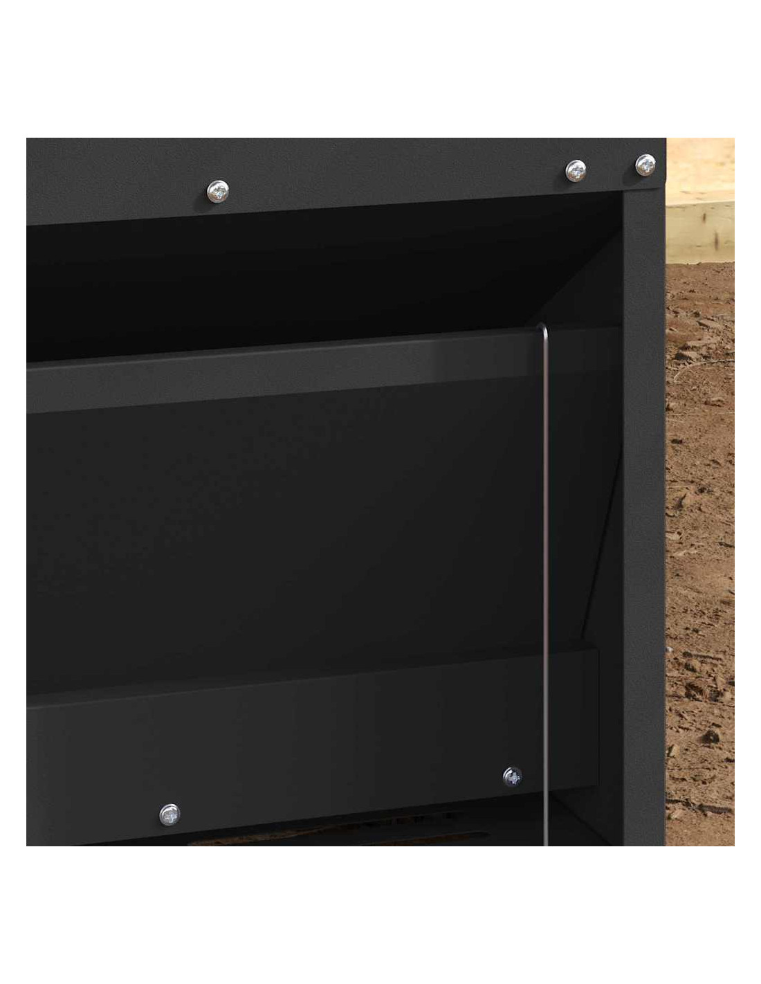 - Design moderno in acciaio: Realizzata in acciaio resistente, questa mangiatoia è fatta per durare e si adatta perfettamente a vari ambienti, sia interni che esterni.