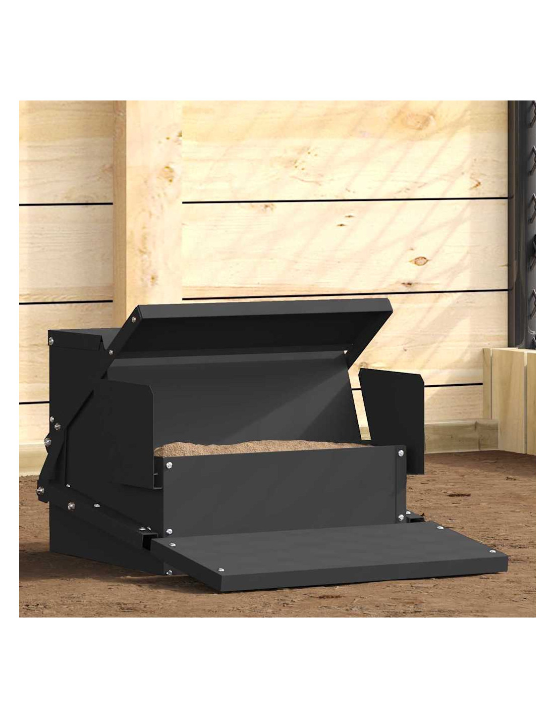 - Materiali: Il distributore è fatto di acciaio resistente che resiste agli agenti atmosferici e all'uso frequente, perfetto per alimentare galline in condizioni climatiche diverse. Ha un look elegante e si inserisce bene nel tuo giardino o terrazza pur mantenendo un servizio duraturo.