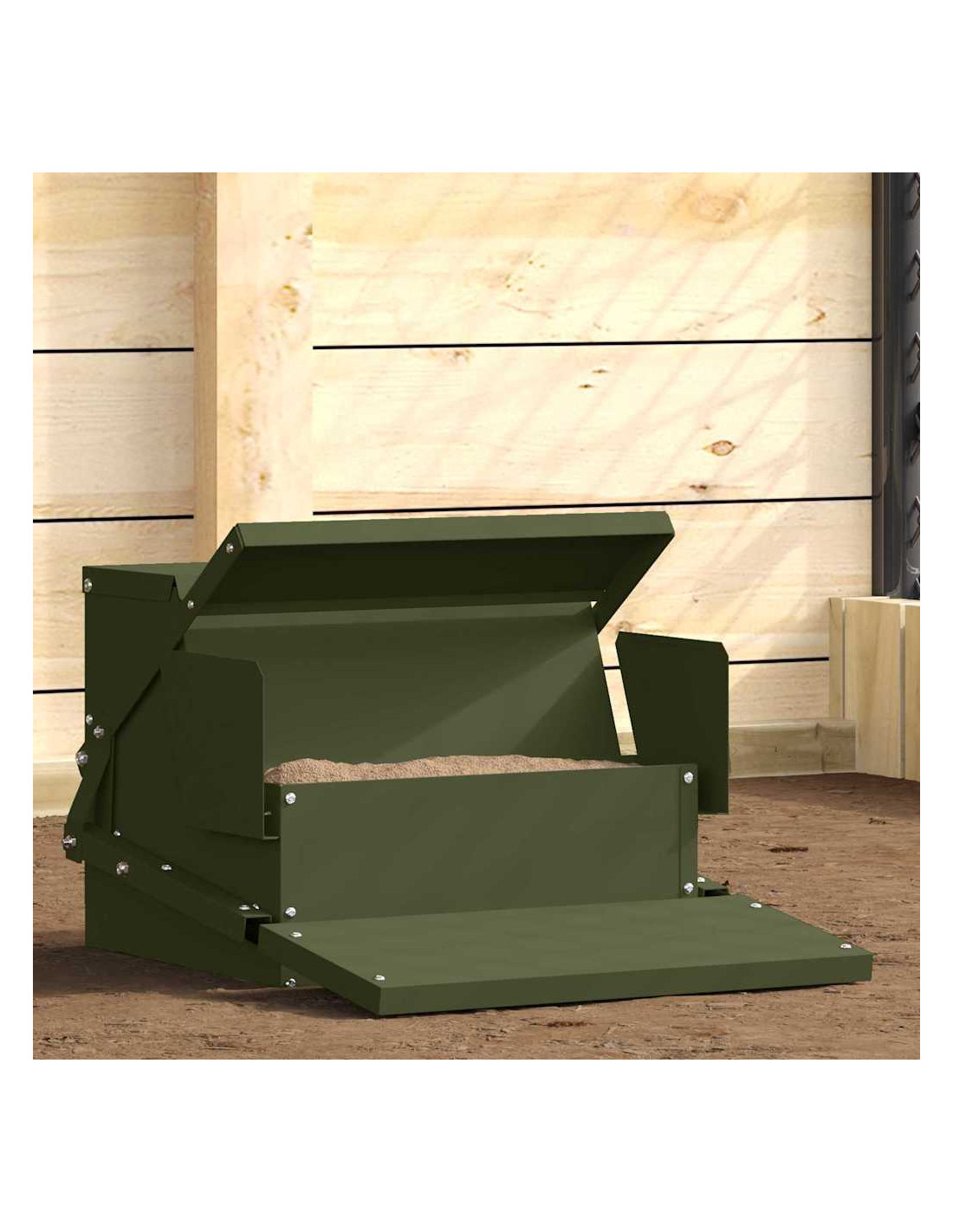 - Materiali: Il distributore è fatto di acciaio resistente che resiste agli agenti atmosferici e all'uso frequente, perfetto per alimentare galline in condizioni climatiche diverse. Ha un look elegante e si inserisce bene nel tuo giardino o terrazza pur mantenendo un servizio duraturo.