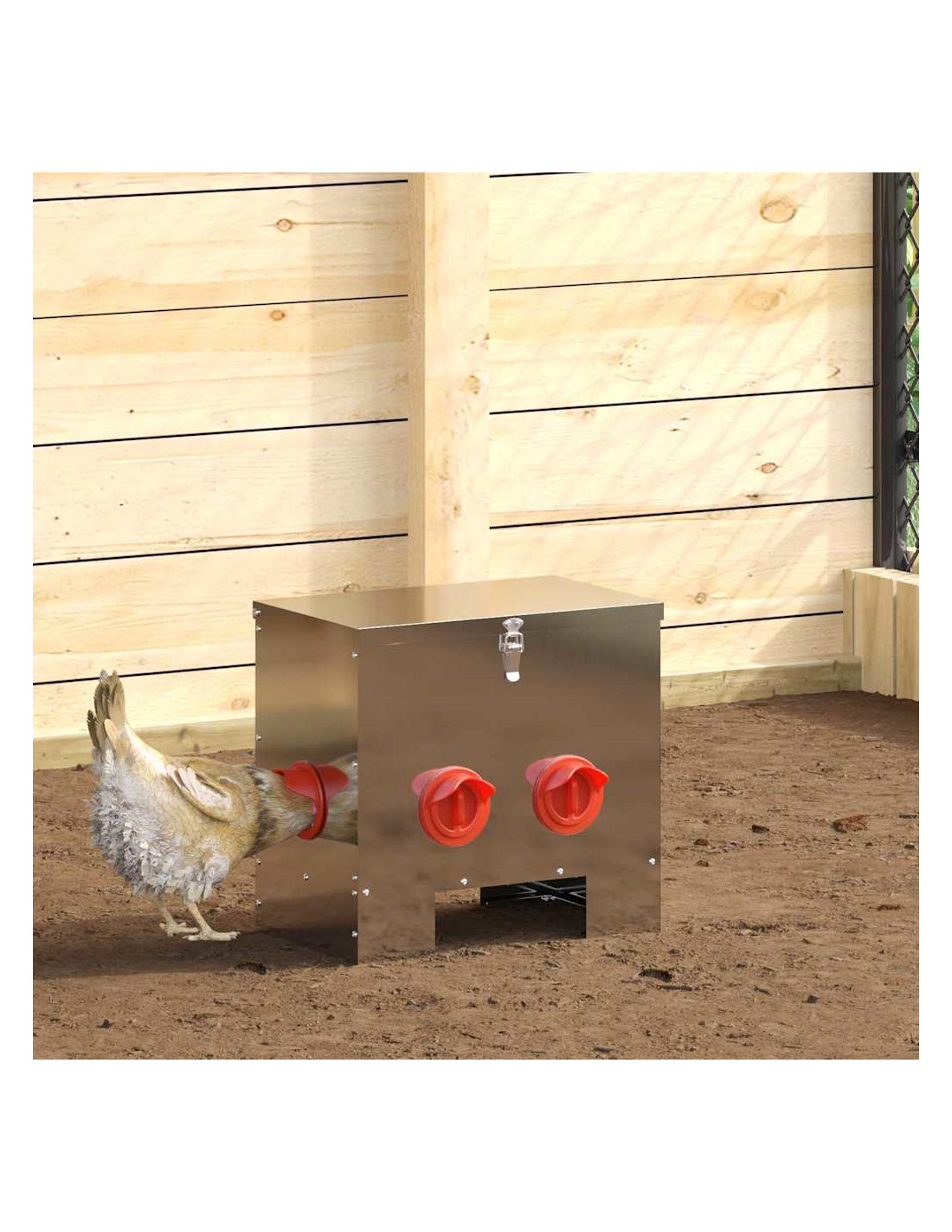 Questo mangiatore per polli è realizzato con cura per chi allevi polli, assicurando un facile accesso al cibo per il tuo allevamento. Con il suo design moderno e linee pulite, si inserisce bene in ogni fattoria o giardino. Che lo metti in giardino o in soggiorno, sarà il tuo alleato nell'alimentare i polli in modo efficiente. È progettato per l'uso sia interno che esterno, quindi puoi adattarlo a qualsiasi ambiente.