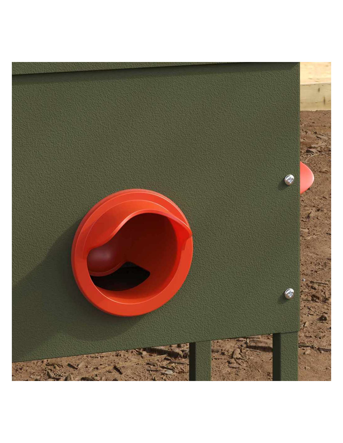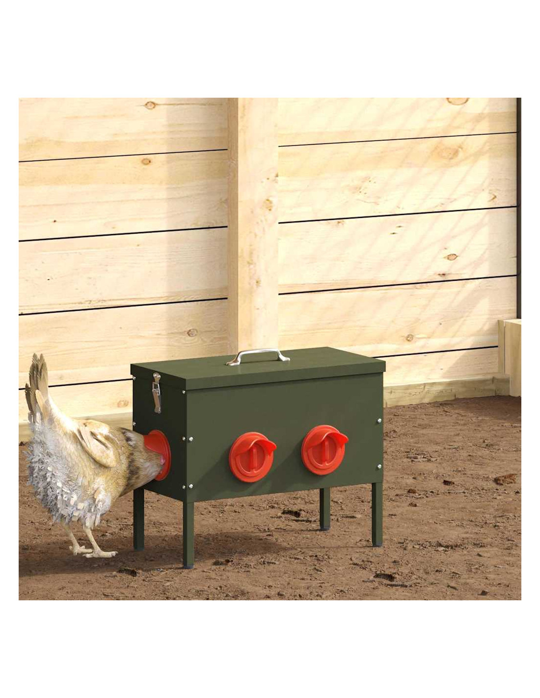 - Adattabilità interna ed esterna: La mangiatoia si adatta facilmente sia all'interno che all'esterno, offrendo versatilità nel posizionamento. Perfetta per un pollaio in giardino o un ricovero al chiuso, soddisfa diverse necessità di alimentazione.