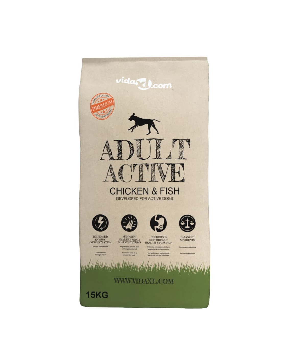 Il nostro cibo secco per cani premium Adult Active Chicken & Fish è ricco di prebiotici che supportano la salute intestinale del vostro cane, contribuendo contemporaneamente alla formazione di una pelle e un manto sani. Il cibo per cani è l'alimento ideale per i cani con un fabbisogno energetico aumentato, in quanto va a fornire una maggiore resistenza e prestazioni ottimali. Contiene almeno il 14% di carne di pollo essiccata come fonte di proteina animale di alta qualità. Cani molto attivi hanno la necessità di prestare ad alti livelli e necessitano quindi di un cibo ad alta concentrazione di valori energetici. Il nostro cibo per cani Adult Active Chicken & Fish è composto da ingredienti accuratamente selezionati, che vengono trasformati in un alimento di qualità molto gustoso e altamente tollerato che è ideale per cani attivi. Il cibo per cani contiene proteine essenziali, acidi grassi, minerali, oligoelementi e vitamine nelle giuste proporzioni, offrendo nutrienti bilanciati per i vostri cani. Questi nutrienti sono essenziali per la salute del vostro cane. Le crocchette sono adatte a tutte le razze di cani da 1 anno di età in su.