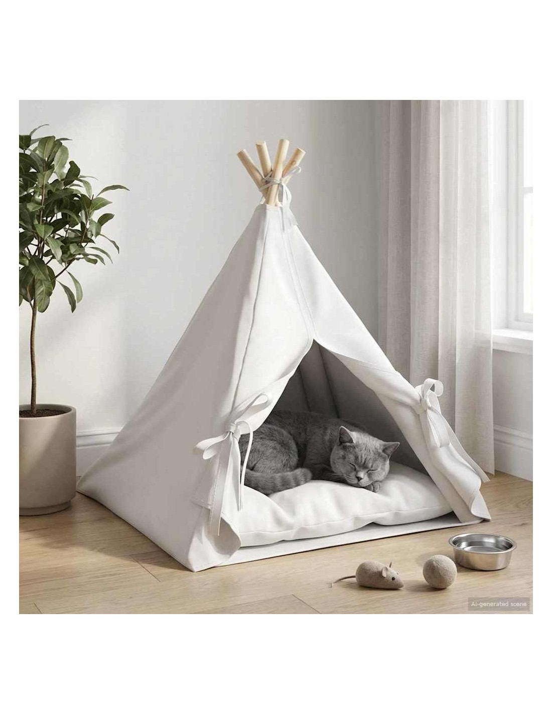 Questo teepee per animali offre uno spazio tutto per il riposo dei tuoi amici a quattro zampe. Progettato per ambienti interni, si concentra su un'utilità pratica, fornendo un rifugio comodo per i tuoi animali mentre riposano. Combinando funzionalità e facilità d'uso, questa tenda è un'ottima aggiunta alla tua casa, supportando il tuo animale con un'area confortevole per il riposo quotidiano. Struttura robusta: I pali sono fatti in legno di pino solido, offrendo un supporto stabile e un aspetto naturale. Il telaio mantiene la tenda eretta e bilanciata per uso quotidiano, creando un'area di riposo affidabile per gli animali. Tessuto e cuscino resistenti: La tenda è in tessuto di poliestere, progettata per l'uso quotidiano dagli animali. Il tessuto è morbido e traspirante, per un ambiente confortevole. All'interno, un cuscino morbido garantisce una superficie confortevole e rimane ben sagomato nel tempo, creando uno spazio accogliente per il relax. Design pieghevole per la conservazione: La struttura pratica rende il montaggio facile, senza bisogno di attrezzi complicati. Quando non la usi, il cuscino interno può essere tolto e i pali di legno possono essere smontati, permettendo alla tenda di occupare meno spazio. Questo design facilita la conservazione e il cambiamento di posizione della tenda in casa. Corde di legatura sicure: Le corde di legatura sono integrate all'ingresso per fissare la tenda ordinatamente su entrambi i lati. Questa caratteristica semplice mantiene l'apertura accessibile e l'aspetto ordinato. La tenda rimane fissa anche quando gli animali entrano o escono. Manutenzione semplice: Tenere pulito questo teepee è semplice e adatto per l'uso quotidiano. Le superfici in tessuto e cuscino possono essere facilmente pulite con un panno umido, mantenendo lo spazio di riposo fresco nel tempo.