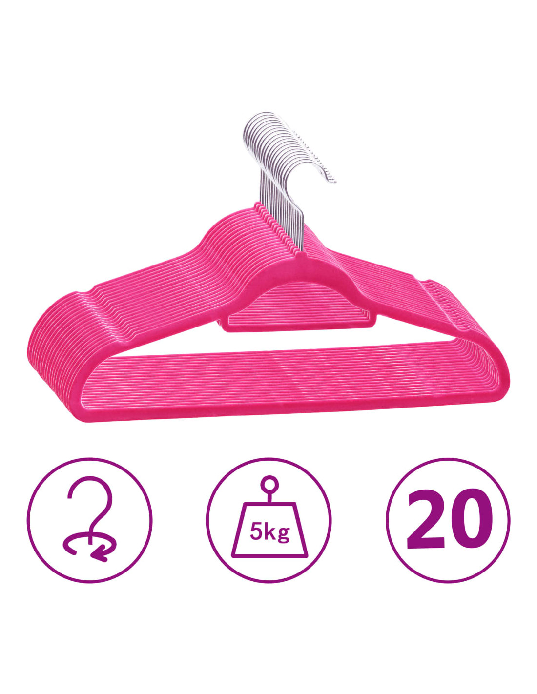 Questo set di appendini è realizzato in plastica e metallo, materiali che rendono il prodotto resistente e robusto e in grado di sostenere anche abiti dal peso elevato. La superficie di rivestimento in velluto è liscia e aiuta a proteggere i vestiti dai graffi. Il gancio girevole a 360 gradi offre flessibilità per organizzare gli abiti al meglio. Inoltre, 2 scanalature su due lati impediscono agli abiti o agli accessori di scivolare.