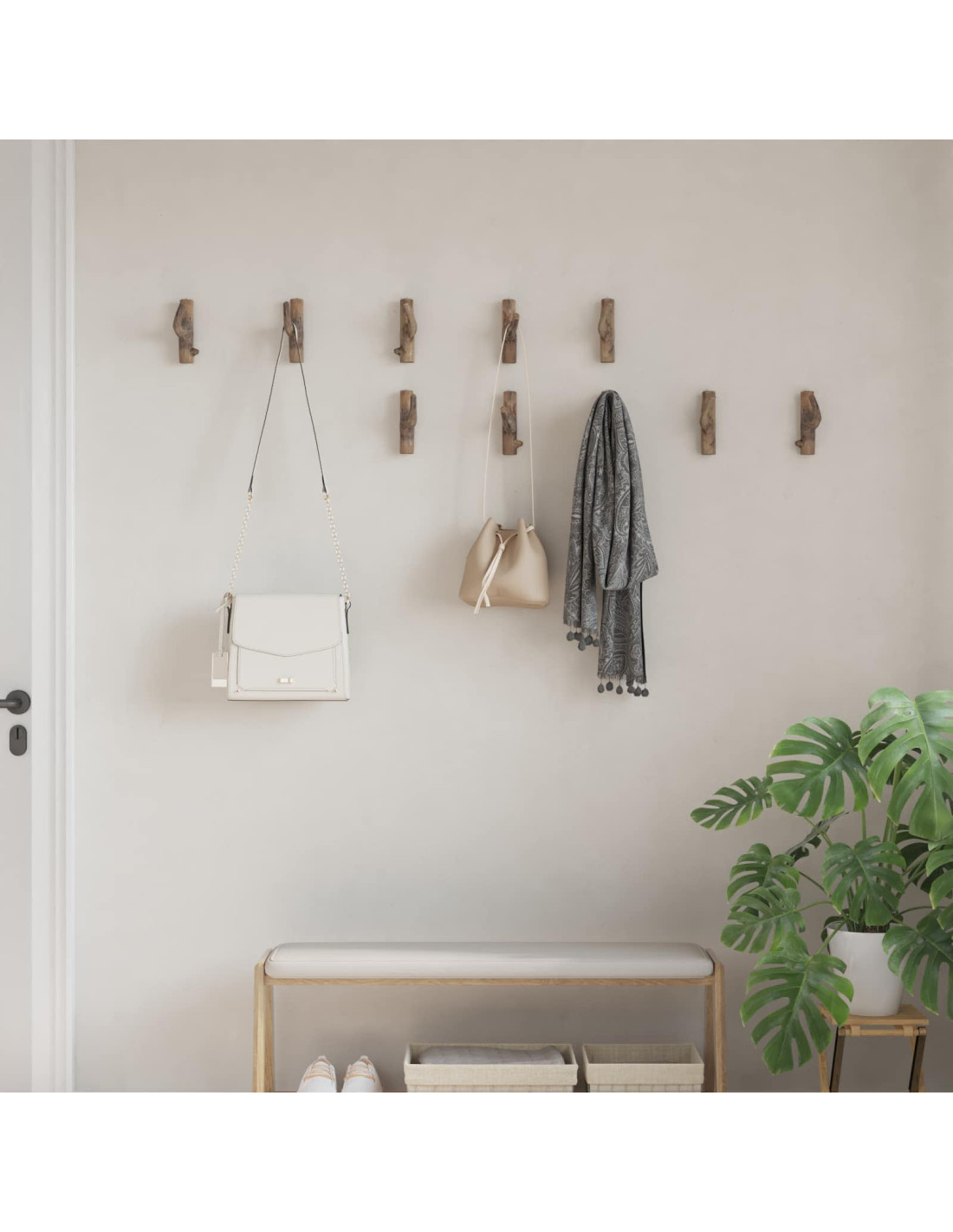 - Materiale di qualità: Questo gancio per cappotti è fatto di legno massello di recupero, unendo durevolezza e stile. La solidità di questo materiale fa sì che possa reggere vari indumenti, dai cappotti pesanti alle sciarpe leggere.