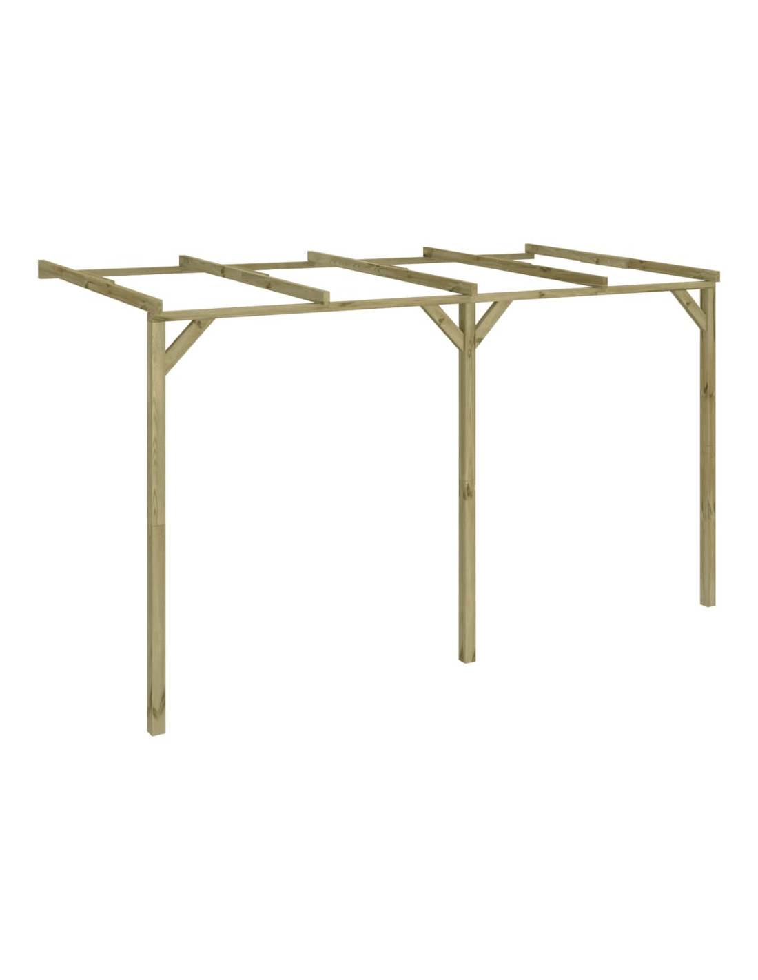 Realizzato in legno impregnato verde, questo pergolato in legno è molto robusto, durevole e non marcisce. Potete scegliere di coprire il tetto con pannelli di policarbonato ed il design inclinato del pergolato permetterà all'acqua di scorrere.