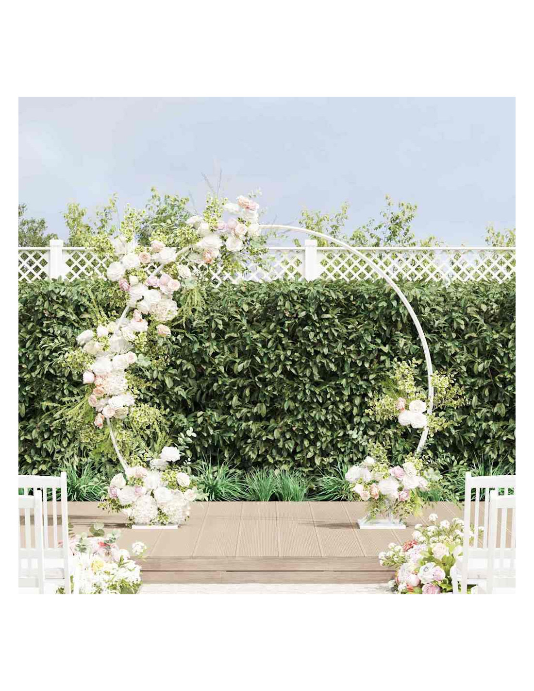 - Compatibile all'aperto Progettato per stare all'esterno, questo arco resiste agli agenti atmosferici, rendendolo ideale per matrimoni in giardino, sulla spiaggia o su terrazze. La sua presenza duratura è la cornice perfetta per momente indimenticabili.