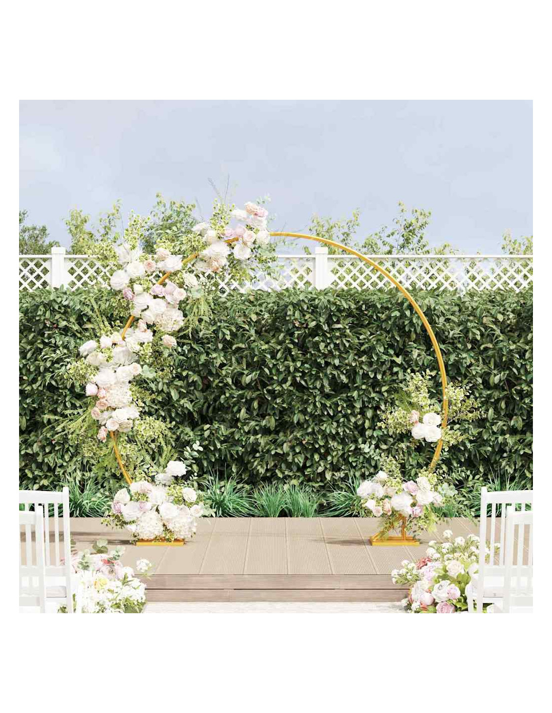 - Compatibile all'aperto Progettato per stare all'esterno, questo arco resiste agli agenti atmosferici, rendendolo ideale per matrimoni in giardino, sulla spiaggia o su terrazze. La sua presenza duratura è la cornice perfetta per momente indimenticabili.