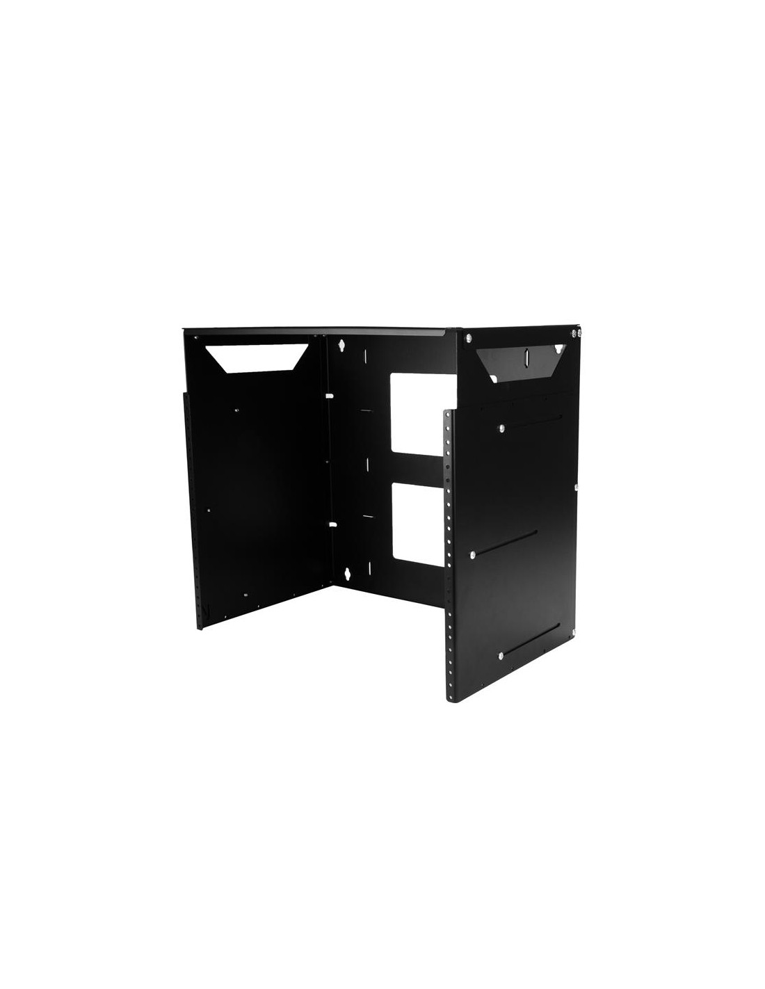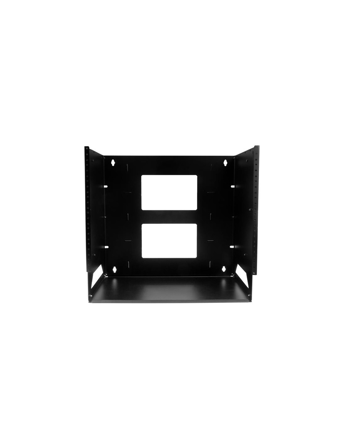 Rack di montaggio a parete da 8U di spazio per l'installazione a muro di server o apparecchiature A/V. Il rack è dotato anche di un ripiano integrato per disporre di una superficie robusta su cui riporre le apparecchiature che non possono essere montate su rack.