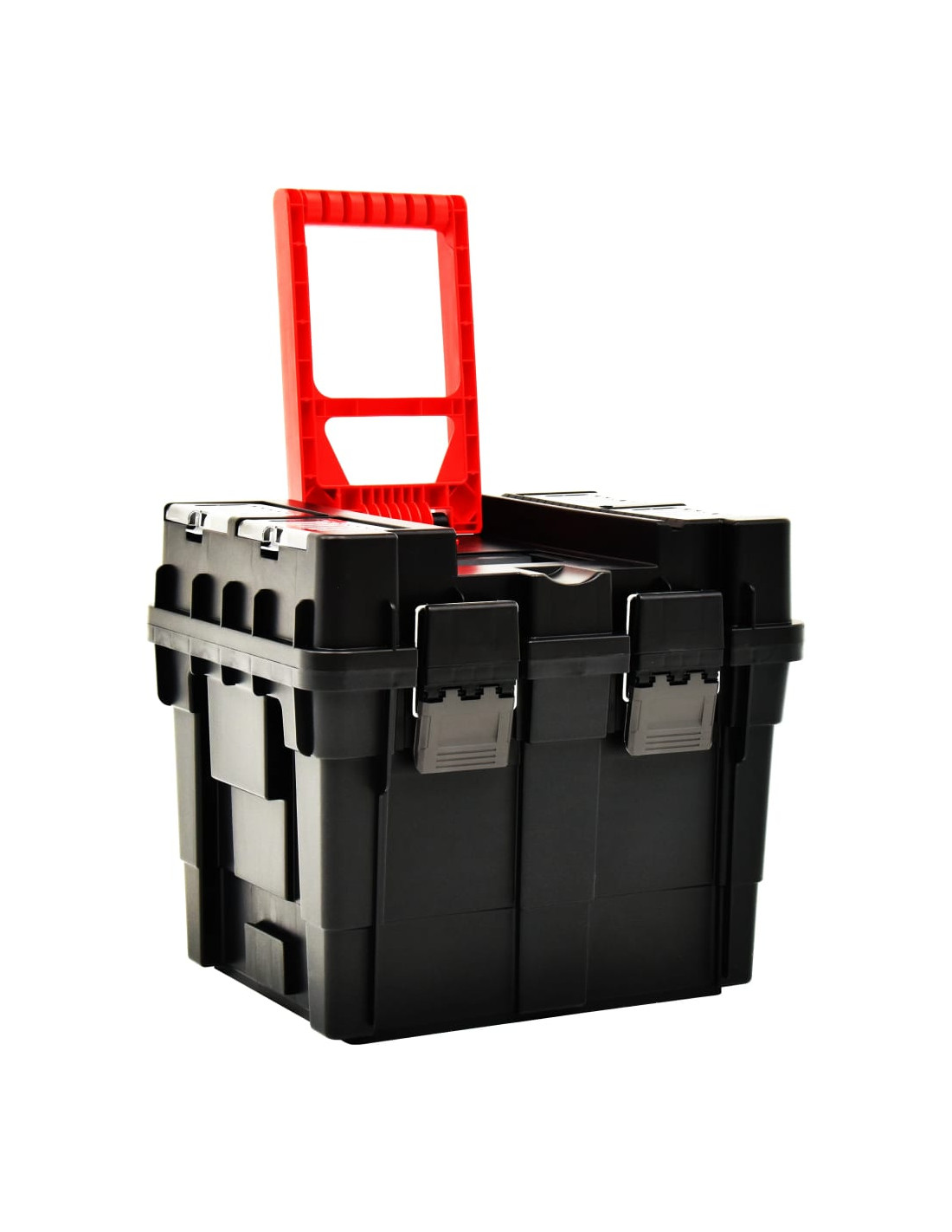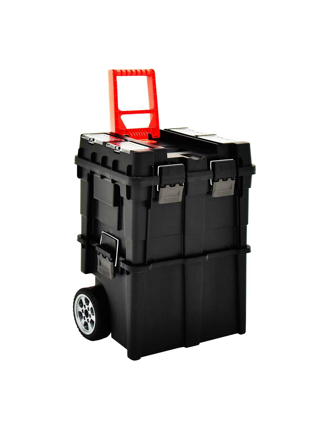 Inoltre, con l'aiuto delle ruote robuste, la maniglia intuitiva consente di trasportare il contenuto. E il caratteristico design impilabile assicura che 2 scatole possano essere utilizzate separatamente quando necessario.