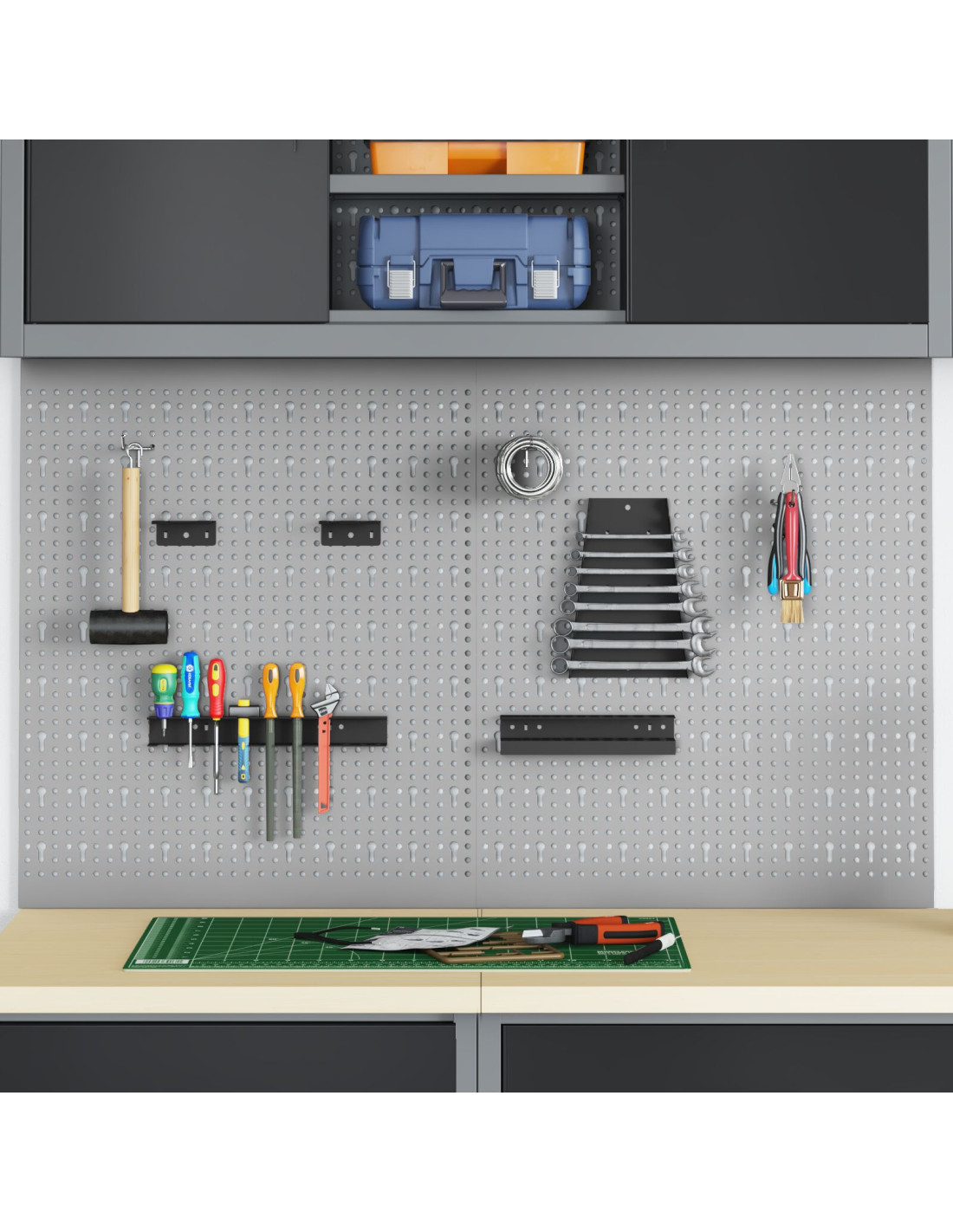 - Organizzazione pratica degli attrezzi: Il pannello offre un sistema di stoccaggio che ti aiuta a risparmiare spazio nella tua officina. I vari scomparti, pensati per attrezzi specifici, semplificano l'accesso, rendendo questa scelta utile sia per i professionisti che per gli appassionati. Il design intelligente fa sì che gli attrezzi siano sempre a portata di mano.