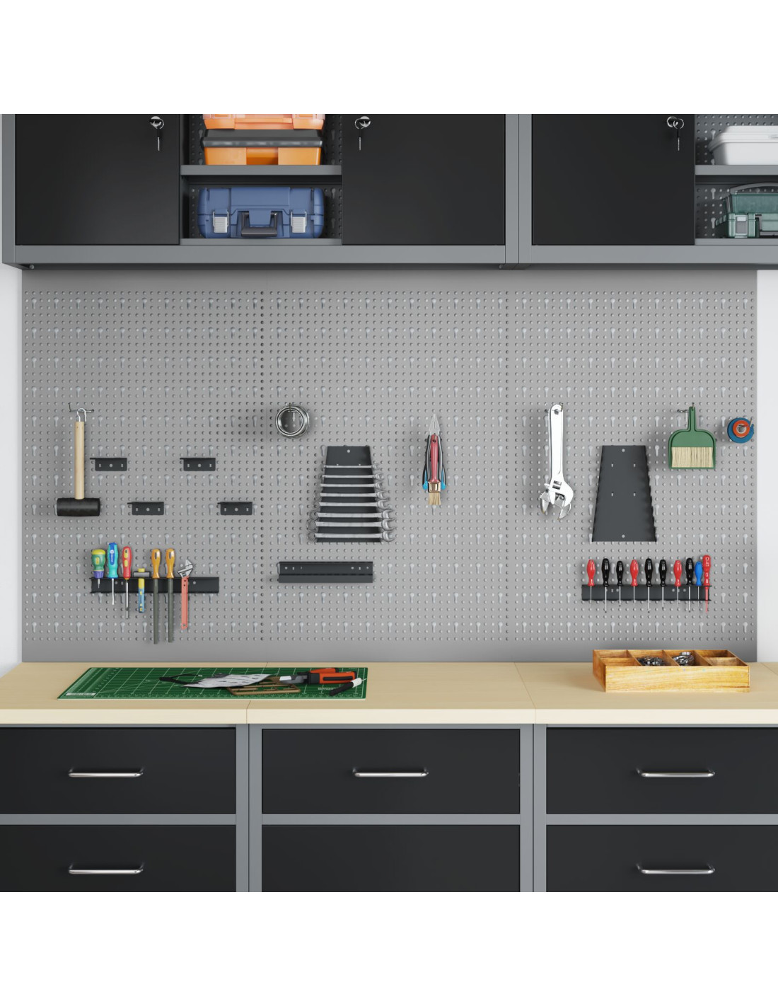 - Organizzazione pratica degli attrezzi: Il pannello offre un sistema di stoccaggio che ti aiuta a risparmiare spazio nella tua officina. I vari scomparti, pensati per attrezzi specifici, semplificano l'accesso, rendendo questa scelta utile sia per i professionisti che per gli appassionati. Il design intelligente fa sì che gli attrezzi siano sempre a portata di mano.