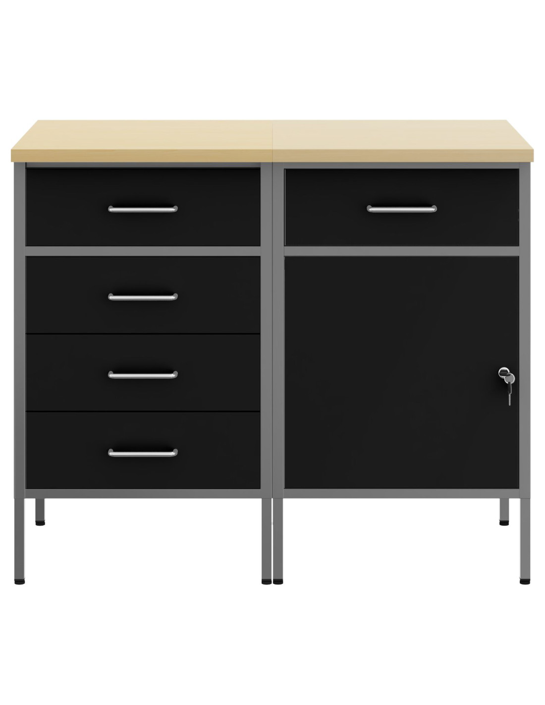 - Telaio in acciaio: Fatto in legno ingegnerizzato e acciaio, questo armadietto è robusto e duraturo, perfetto per il tuo spazio di lavoro. La struttura forte rende sicuro riporre attrezzi pesanti senza preoccupazioni. Anche se è resistente, ha un aspetto elegante, migliorando l'estetica della tua officina. Mantenere pulito basta usarci un panno umido.
