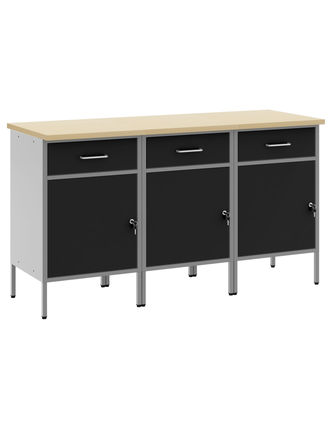 - Telaio in acciaio: Fatto in legno ingegnerizzato e acciaio, questo armadietto è robusto e duraturo, perfetto per il tuo spazio di lavoro. La struttura forte rende sicuro riporre attrezzi pesanti senza preoccupazioni. Anche se è resistente, ha un aspetto elegante, migliorando l'estetica della tua officina. Mantenere pulito basta usarci un panno umido.