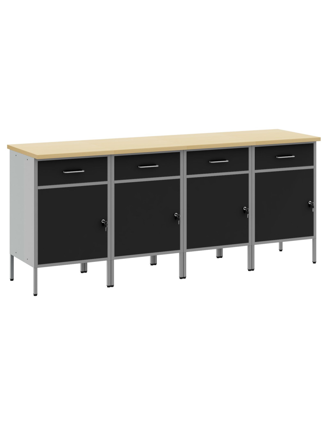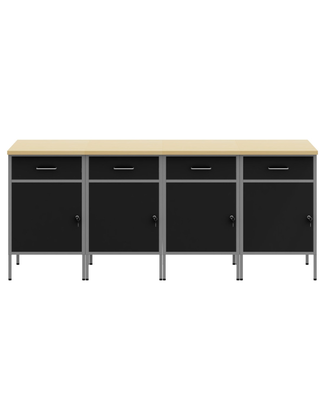 - Telaio in acciaio: Fatto in legno ingegnerizzato e acciaio, questo armadietto è robusto e duraturo, perfetto per il tuo spazio di lavoro. La struttura forte rende sicuro riporre attrezzi pesanti senza preoccupazioni. Anche se è resistente, ha un aspetto elegante, migliorando l'estetica della tua officina. Mantenere pulito basta usarci un panno umido.