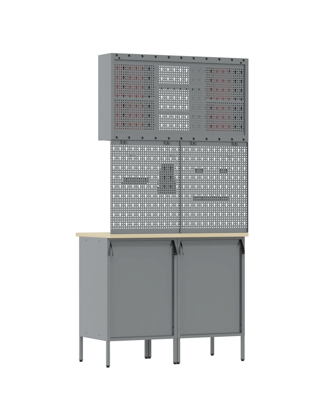 Questo resistente set di armadi da lavoro unisce funzionalità e stile, rendendo il tuo laboratorio interno pratico e bello da vedere. Con un design elegante e moderno, è ideale per chi ama spazi organizzati. È facile da usare e perfetto per mantenere tutto in ordine mentre il tuo posto di lavoro rimane raffinato.