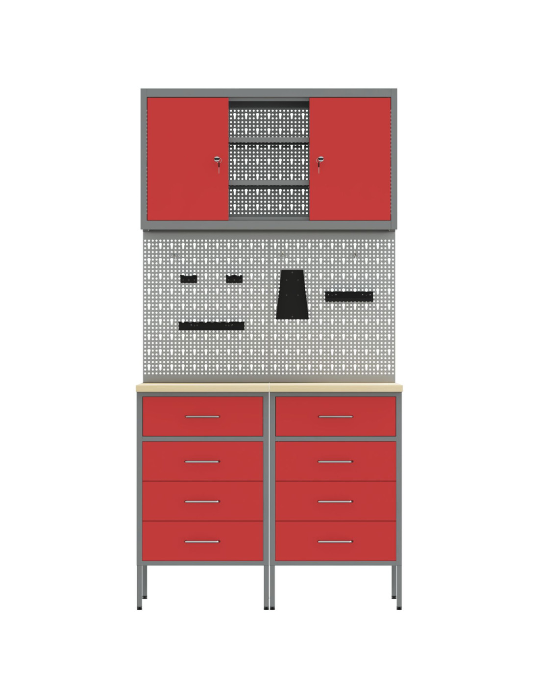 Questo resistente set di armadi da lavoro unisce funzionalità e stile, rendendo il tuo laboratorio interno pratico e bello da vedere. Con un design elegante e moderno, è ideale per chi ama spazi organizzati. È facile da usare e perfetto per mantenere tutto in ordine mentre il tuo posto di lavoro rimane raffinato.