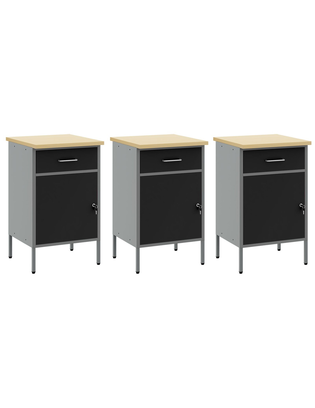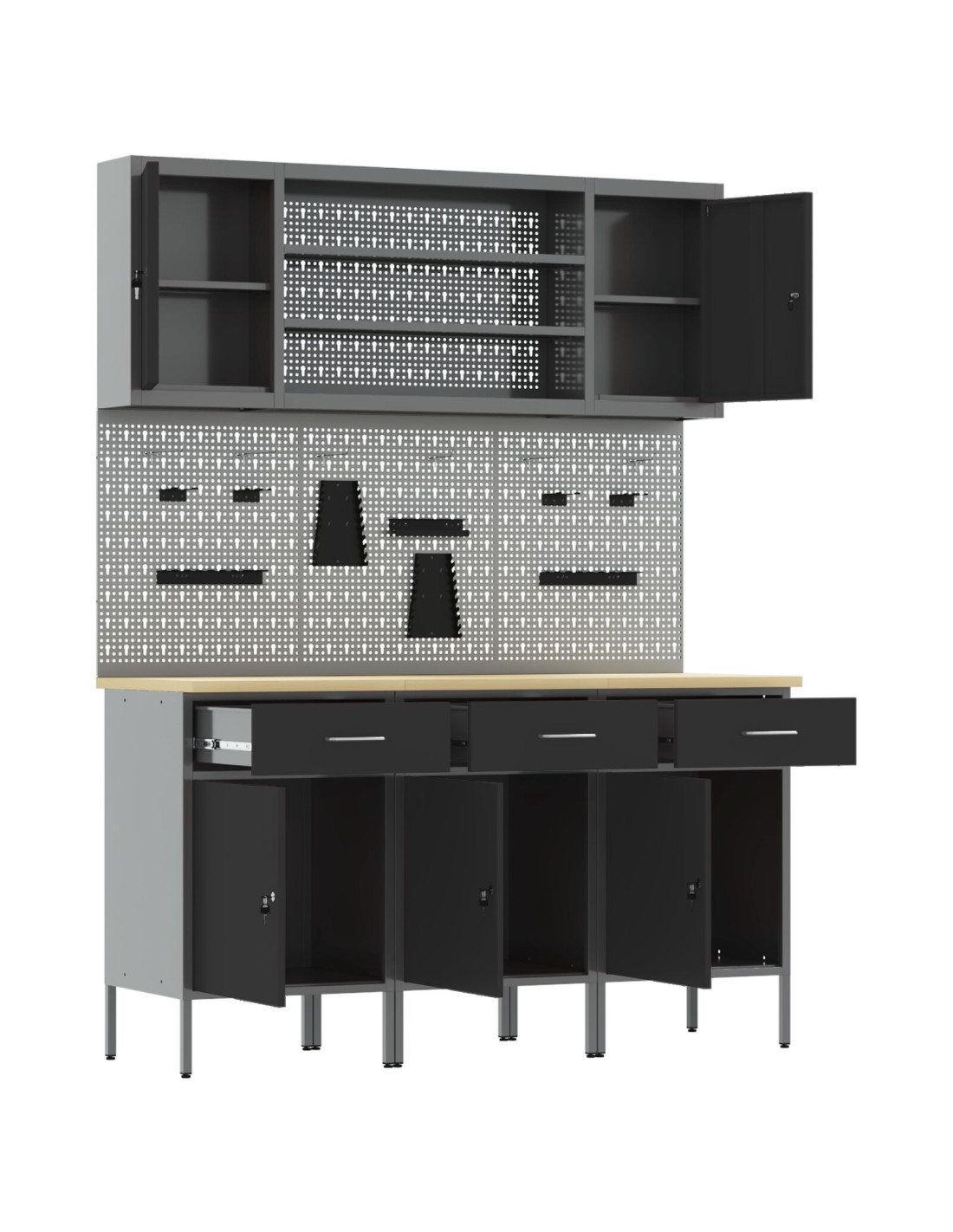 - Telaio in acciaio: Fatto in legno ingegnerizzato e acciaio, questo armadietto è robusto e duraturo, perfetto per il tuo spazio di lavoro. La struttura forte rende sicuro riporre attrezzi pesanti senza preoccupazioni. Anche se è resistente, ha un aspetto elegante, migliorando l'estetica della tua officina. Mantenere pulito basta usarci un panno umido.