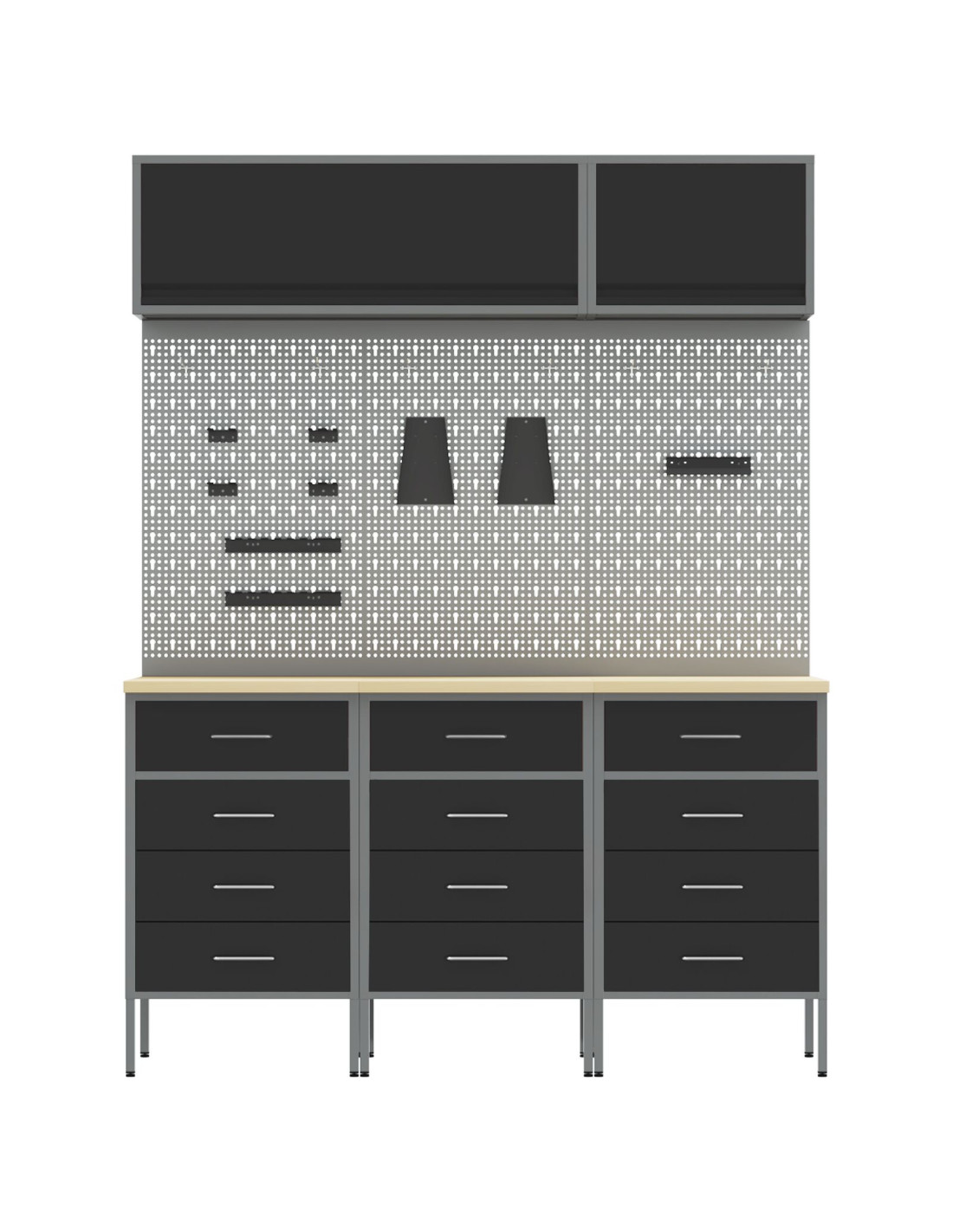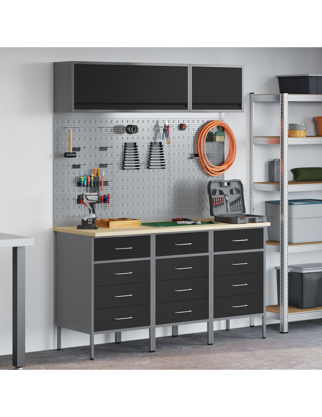 Questo resistente set di armadi da lavoro unisce funzionalità e stile, rendendo il tuo laboratorio interno pratico e bello da vedere. Con un design elegante e moderno, è ideale per chi ama spazi organizzati. È facile da usare e perfetto per mantenere tutto in ordine mentre il tuo posto di lavoro rimane raffinato.