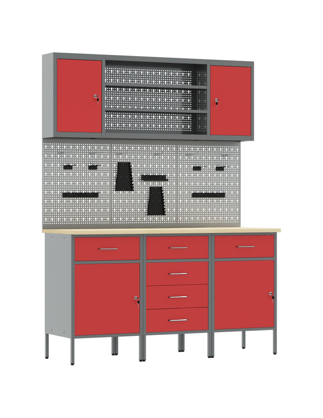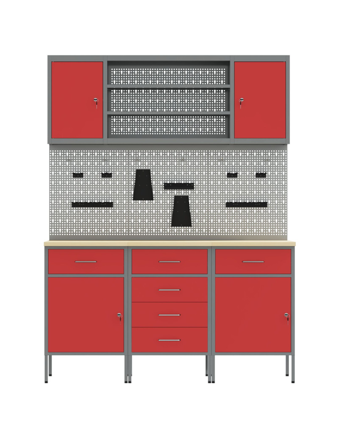 - Telaio in acciaio: Fatto in legno ingegnerizzato e acciaio, questo armadietto è robusto e duraturo, perfetto per il tuo spazio di lavoro. La struttura forte rende sicuro riporre attrezzi pesanti senza preoccupazioni. Anche se è resistente, ha un aspetto elegante, migliorando l'estetica della tua officina. Mantenere pulito basta usarci un panno umido.