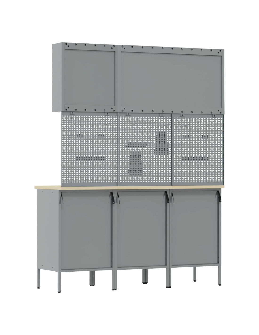 - Telaio in acciaio: Fatto in legno ingegnerizzato e acciaio, questo armadietto è robusto e duraturo, perfetto per il tuo spazio di lavoro. La struttura forte rende sicuro riporre attrezzi pesanti senza preoccupazioni. Anche se è resistente, ha un aspetto elegante, migliorando l'estetica della tua officina. Mantenere pulito basta usarci un panno umido.