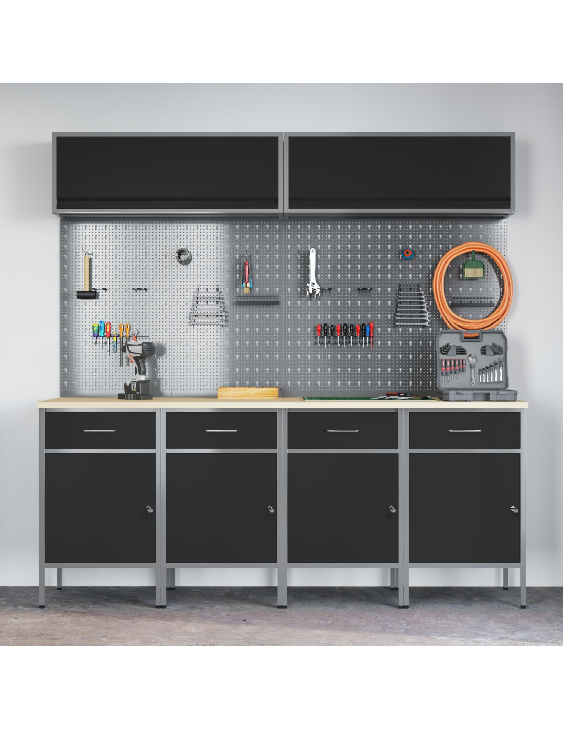 Questo resistente set di armadi da lavoro unisce funzionalità e stile, rendendo il tuo laboratorio interno pratico e bello da vedere. Con un design elegante e moderno, è ideale per chi ama spazi organizzati. È facile da usare e perfetto per mantenere tutto in ordine mentre il tuo posto di lavoro rimane raffinato.