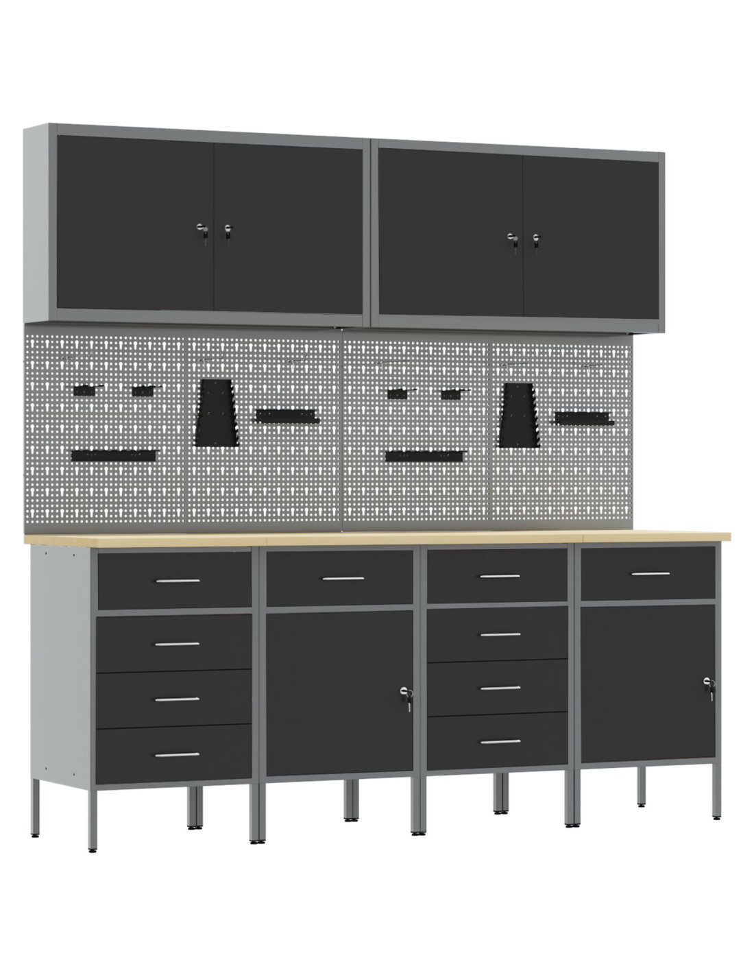 - Telaio in acciaio: Fatto in legno ingegnerizzato e acciaio, questo armadietto è robusto e duraturo, perfetto per il tuo spazio di lavoro. La struttura forte rende sicuro riporre attrezzi pesanti senza preoccupazioni. Anche se è resistente, ha un aspetto elegante, migliorando l'estetica della tua officina. Mantenere pulito basta usarci un panno umido.