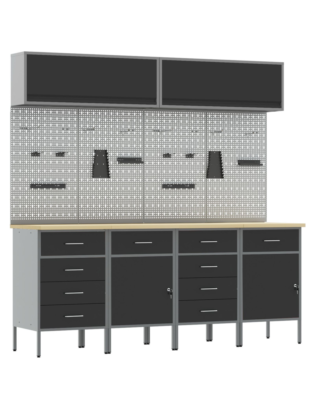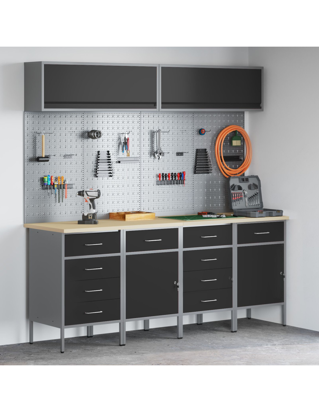 Questo resistente set di armadi da lavoro unisce funzionalità e stile, rendendo il tuo laboratorio interno pratico e bello da vedere. Con un design elegante e moderno, è ideale per chi ama spazi organizzati. È facile da usare e perfetto per mantenere tutto in ordine mentre il tuo posto di lavoro rimane raffinato.