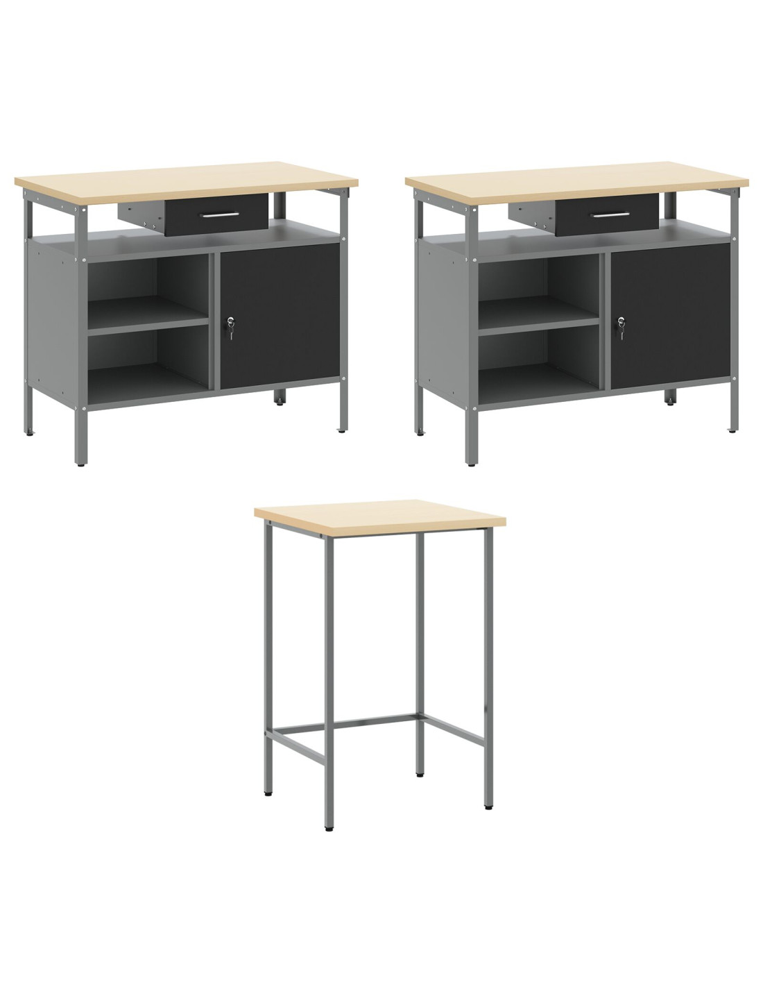 Il set di armadietti da lavoro robusto offre una soluzione pratica e stilosa per organizza gli attrezzi nel tuo laboratorio. Con un design moderno e linee pulite, combina funzionalità e stile, rendendo il tuo spazio di lavoro ordinato e professionale.