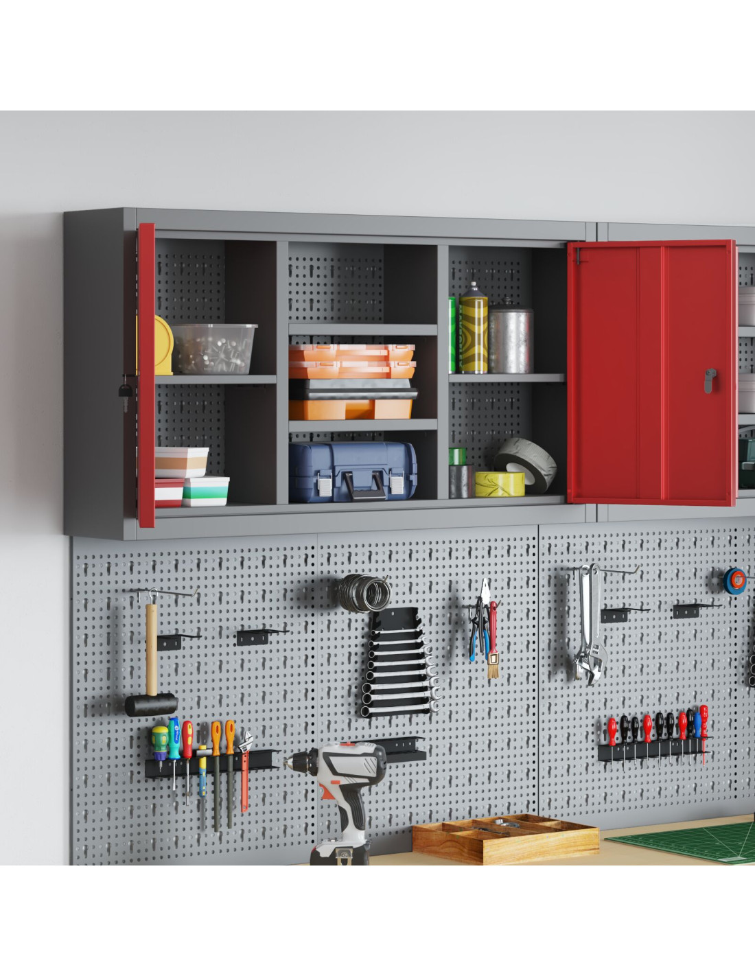 Questo armadietto per attrezzi in acciaio è la combinazione perfetta di stile e funzionalità, adatta a qualsiasi ambiente di lavoro. Il suo design si ispira agli industrial lofts, con un look robusto e moderno. È perfetto per chi ama il fai-da-te o per i professionisti, offrendo un aspetto contemporaneo e praticità.