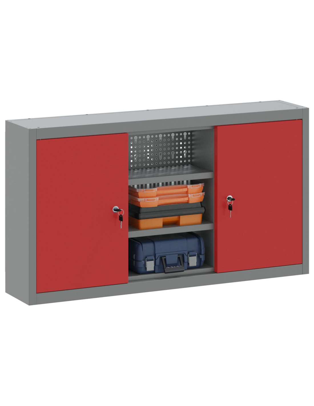 - Acciaio e legno ingegnerizzato: Fabbricato in acciaio robusto e legno ingegnerizzato, l'armadietto resiste all'uso quotidiano mantenendo un aspetto attraente per ogni officina. La combinazione di questi materiali assicura una costruzione duratura che resiste all'usura e richiede poco sforzo per la manutenzione.