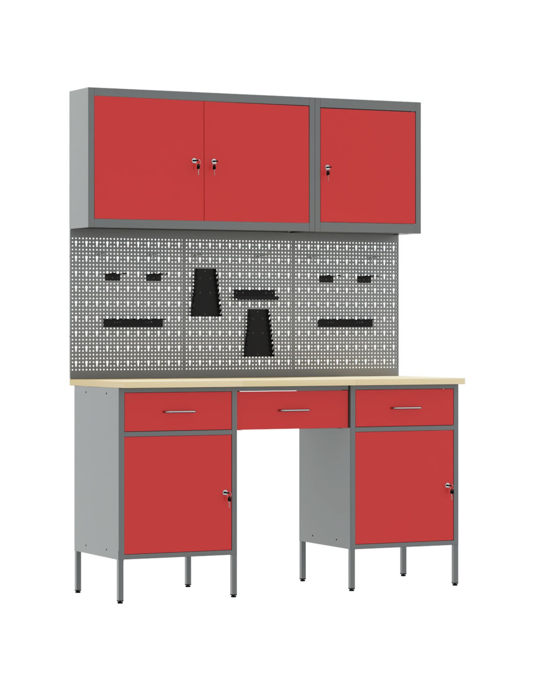 - Telaio in acciaio: Fatto in legno ingegnerizzato e acciaio, questo armadietto è robusto e duraturo, perfetto per il tuo spazio di lavoro. La struttura forte rende sicuro riporre attrezzi pesanti senza preoccupazioni. Anche se è resistente, ha un aspetto elegante, migliorando l'estetica della tua officina. Mantenere pulito basta usarci un panno umido.