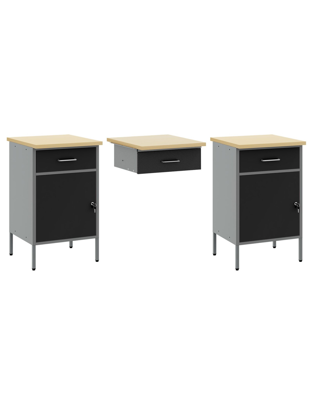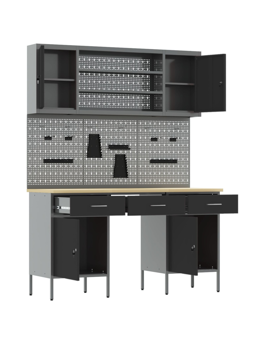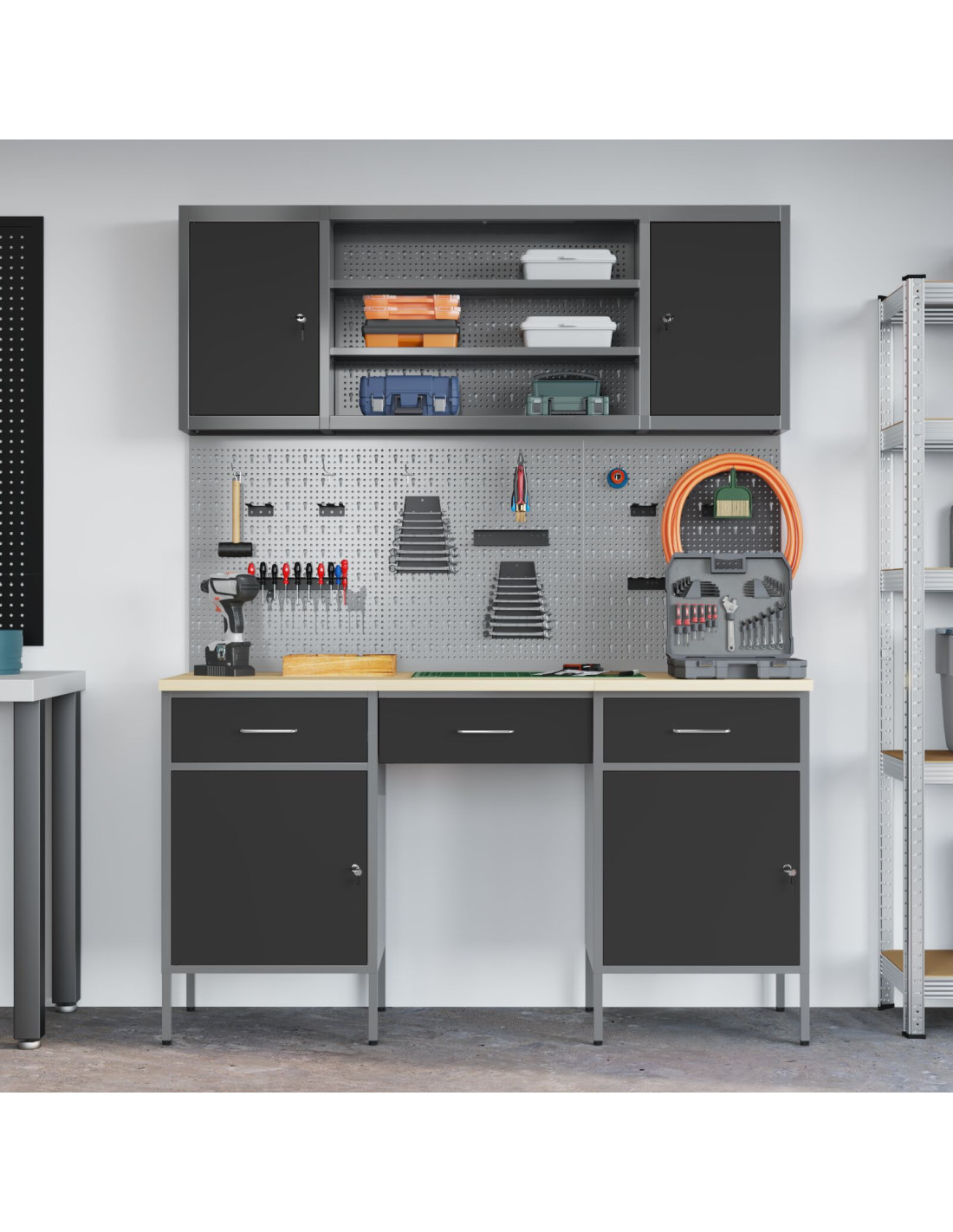 - Telaio in acciaio: Fatto in legno ingegnerizzato e acciaio, questo armadietto è robusto e duraturo, perfetto per il tuo spazio di lavoro. La struttura forte rende sicuro riporre attrezzi pesanti senza preoccupazioni. Anche se è resistente, ha un aspetto elegante, migliorando l'estetica della tua officina. Mantenere pulito basta usarci un panno umido.