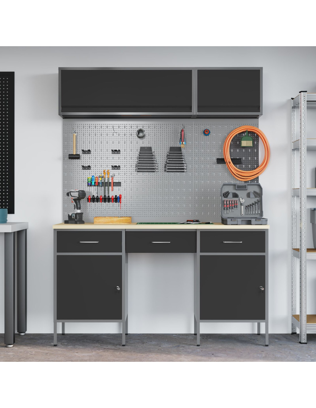 Questo resistente set di armadi da lavoro unisce funzionalità e stile, rendendo il tuo laboratorio interno pratico e bello da vedere. Con un design elegante e moderno, è ideale per chi ama spazi organizzati. È facile da usare e perfetto per mantenere tutto in ordine mentre il tuo posto di lavoro rimane raffinato.
