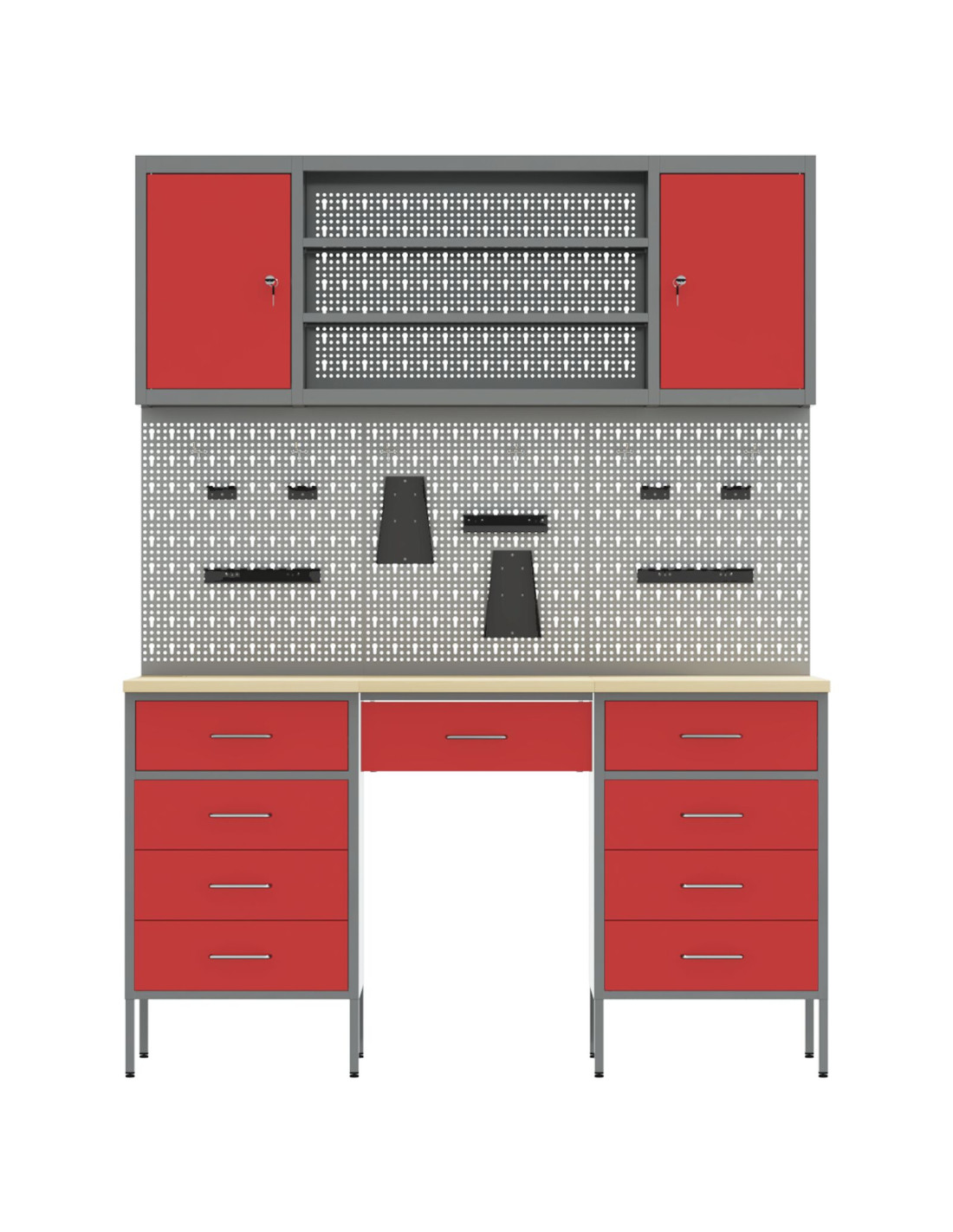 - Telaio in acciaio: Fatto in legno ingegnerizzato e acciaio, questo armadietto è robusto e duraturo, perfetto per il tuo spazio di lavoro. La struttura forte rende sicuro riporre attrezzi pesanti senza preoccupazioni. Anche se è resistente, ha un aspetto elegante, migliorando l'estetica della tua officina. Mantenere pulito basta usarci un panno umido.