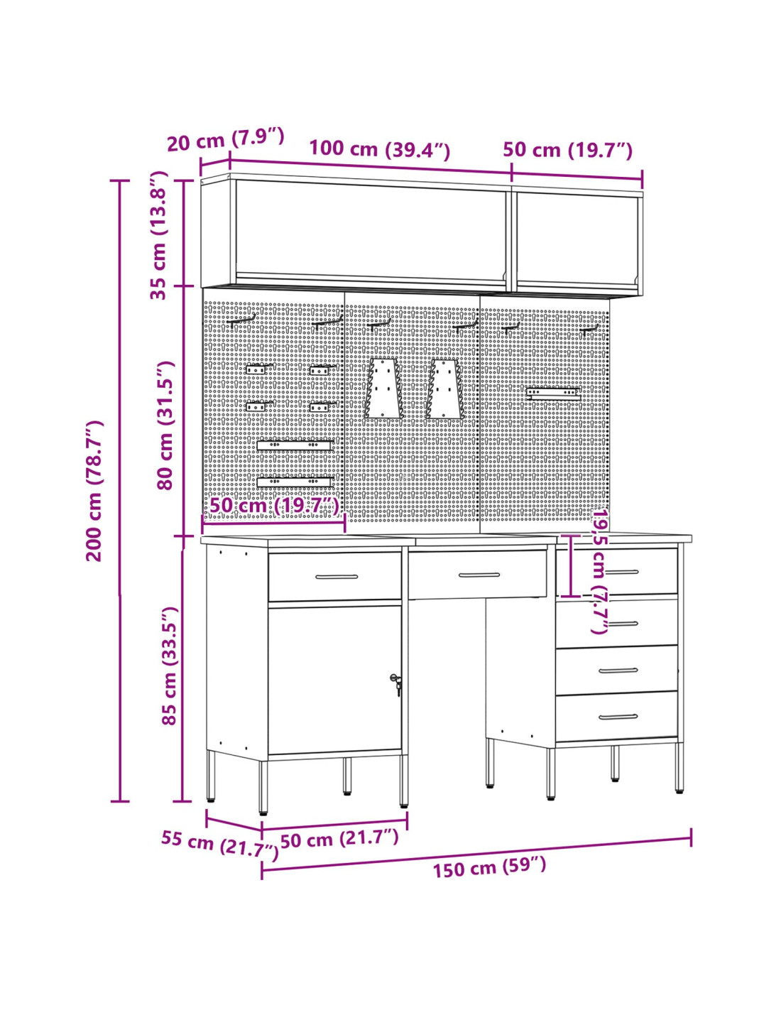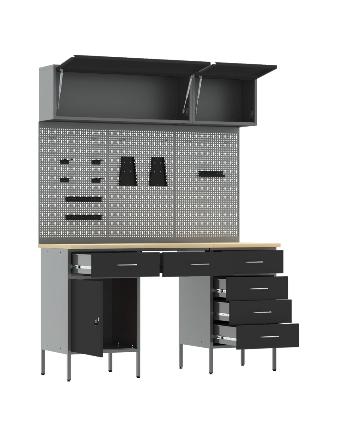 Questo resistente set di armadi da lavoro unisce funzionalità e stile, rendendo il tuo laboratorio interno pratico e bello da vedere. Con un design elegante e moderno, è ideale per chi ama spazi organizzati. È facile da usare e perfetto per mantenere tutto in ordine mentre il tuo posto di lavoro rimane raffinato.