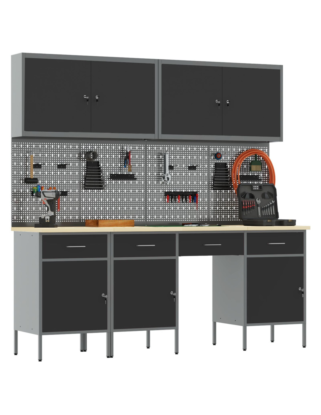 - Telaio in acciaio: Fatto in legno ingegnerizzato e acciaio, questo armadietto è robusto e duraturo, perfetto per il tuo spazio di lavoro. La struttura forte rende sicuro riporre attrezzi pesanti senza preoccupazioni. Anche se è resistente, ha un aspetto elegante, migliorando l'estetica della tua officina. Mantenere pulito basta usarci un panno umido.
