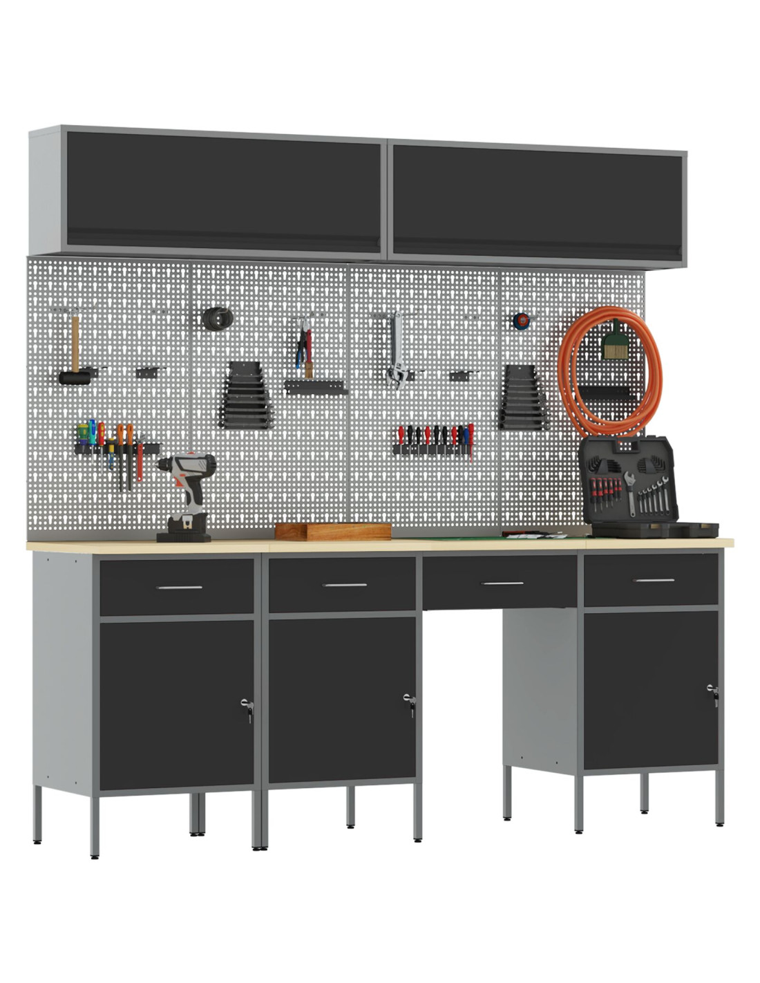 Questo resistente set di armadi da lavoro unisce funzionalità e stile, rendendo il tuo laboratorio interno pratico e bello da vedere. Con un design elegante e moderno, è ideale per chi ama spazi organizzati. È facile da usare e perfetto per mantenere tutto in ordine mentre il tuo posto di lavoro rimane raffinato.