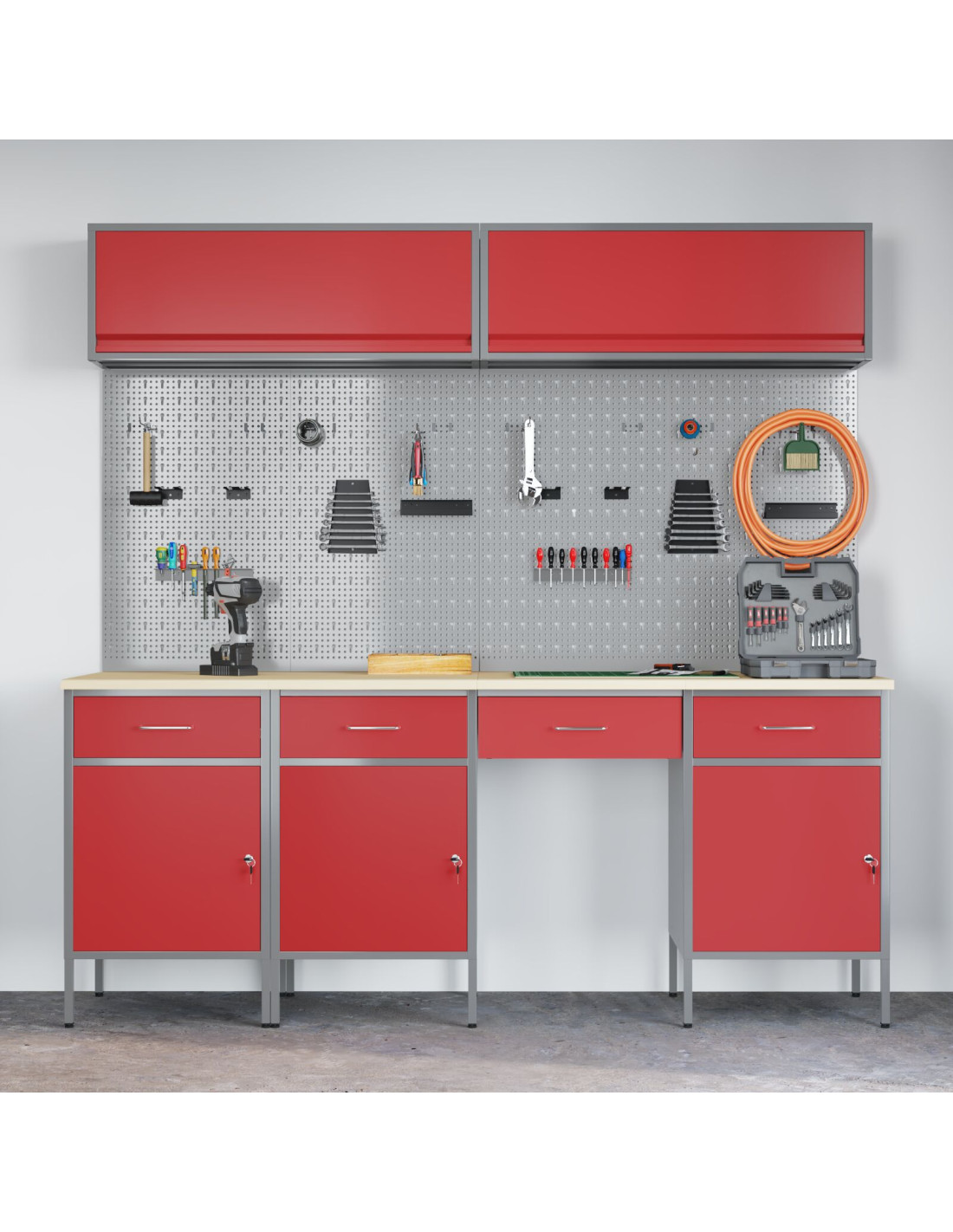Questo resistente set di armadi da lavoro unisce funzionalità e stile, rendendo il tuo laboratorio interno pratico e bello da vedere. Con un design elegante e moderno, è ideale per chi ama spazi organizzati. È facile da usare e perfetto per mantenere tutto in ordine mentre il tuo posto di lavoro rimane raffinato.