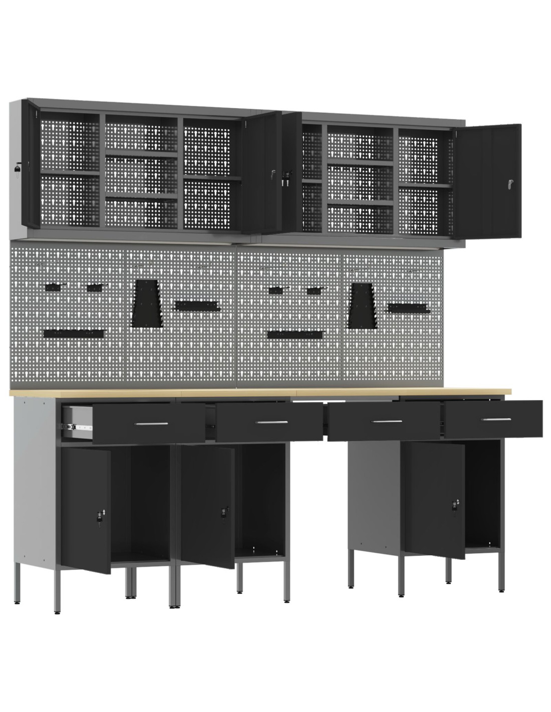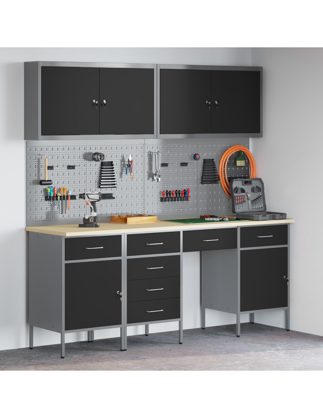 - Telaio in acciaio: Fatto in legno ingegnerizzato e acciaio, questo armadietto è robusto e duraturo, perfetto per il tuo spazio di lavoro. La struttura forte rende sicuro riporre attrezzi pesanti senza preoccupazioni. Anche se è resistente, ha un aspetto elegante, migliorando l'estetica della tua officina. Mantenere pulito basta usarci un panno umido.