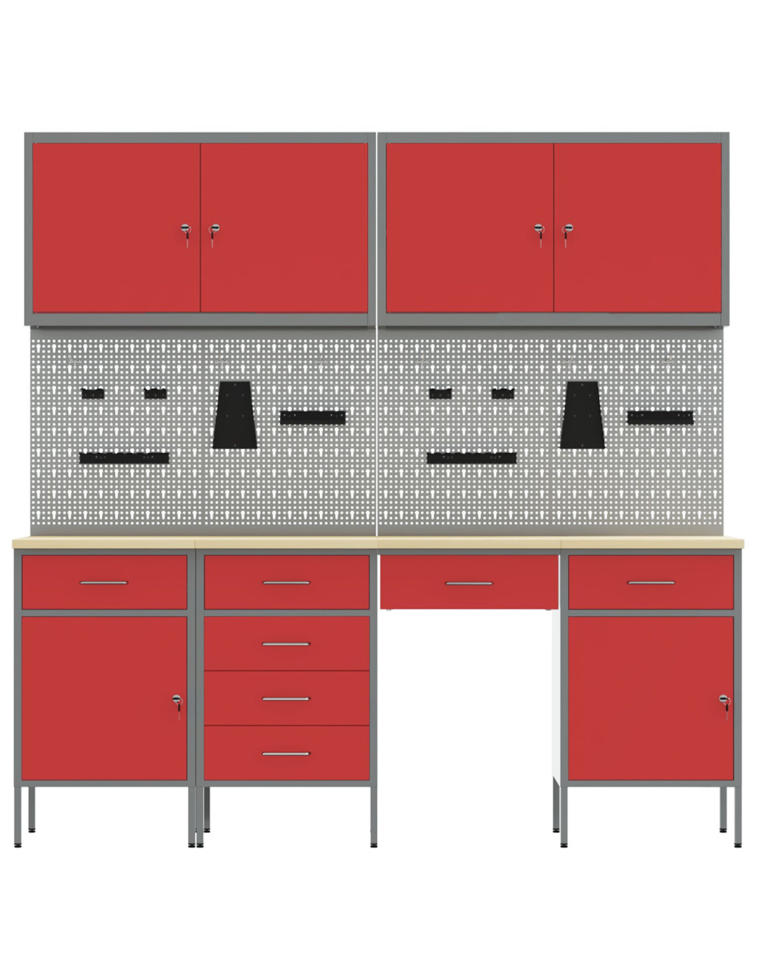 - Telaio in acciaio: Fatto in legno ingegnerizzato e acciaio, questo armadietto è robusto e duraturo, perfetto per il tuo spazio di lavoro. La struttura forte rende sicuro riporre attrezzi pesanti senza preoccupazioni. Anche se è resistente, ha un aspetto elegante, migliorando l'estetica della tua officina. Mantenere pulito basta usarci un panno umido.