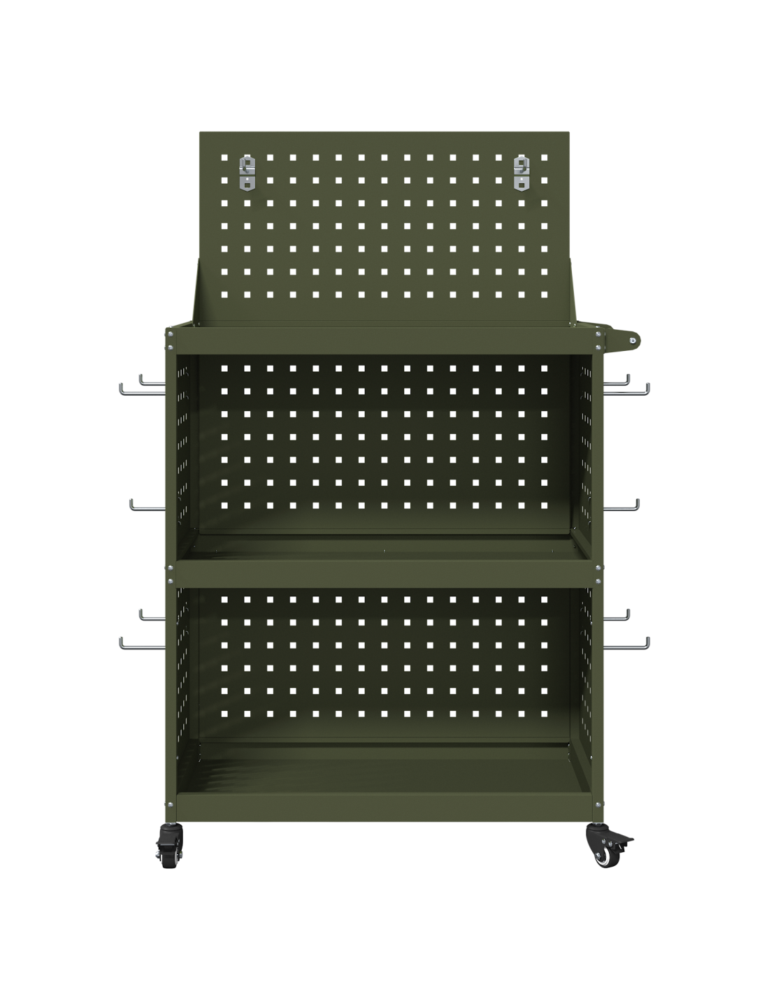 - Stoccaggio funzionale Offre tanto spazio con ripiani e 12 ganci per tenere tutto in ordine, così hai gli attrezzi a portata di mano. Questo rende più veloce il tuo lavoro, perfetto per spazi di lavoro attivi.