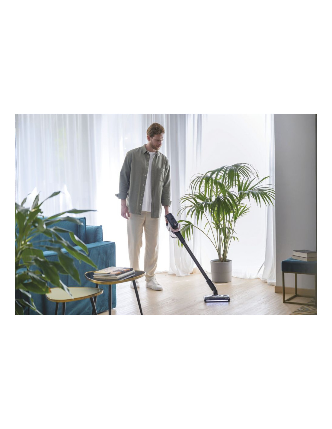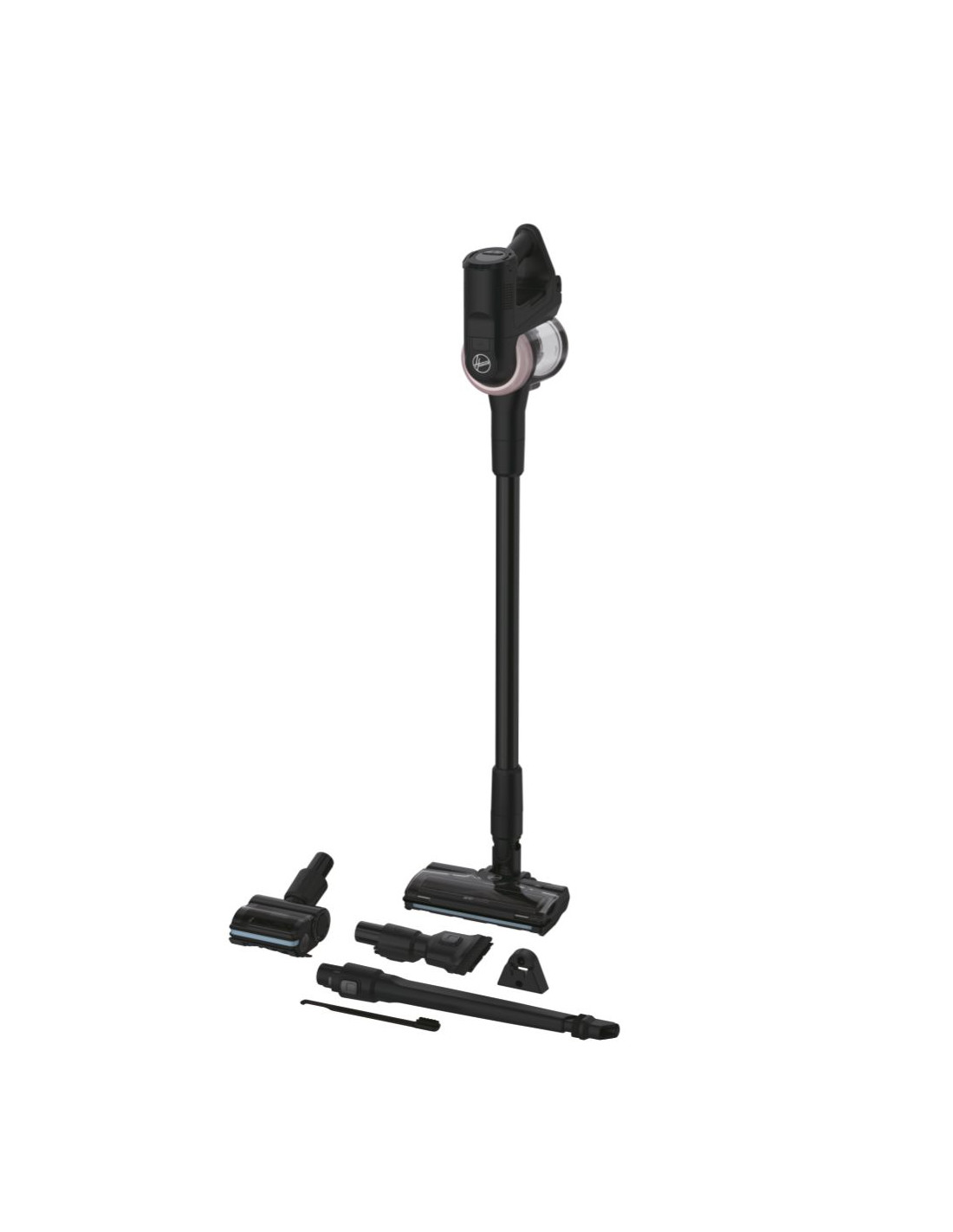 Hoover HF416BF 011. Tipo di prodotto: Aspirapolvere elettrica, Tipo di contenitore della polvere: Senza sacchetto, Colore del prodotto: Nero, Rosa. Tipo di pulizia: Secco, Sistema di filtraggio dell'aspirapolvere: Micro, Metodo di separazione dello sporco: Ciclonico/filtraggio. Alimentazione: Batteria, Massima potenza in entrata: 240 W, Tecnologia batteria: Ioni di Litio. Larghezza imballo: 710 mm, Profondità imballo: 283 mm, Altezza imballo: 142 mm. Larghezza: 258 mm, Profondità: 165 mm, Altezza: 1110 mm