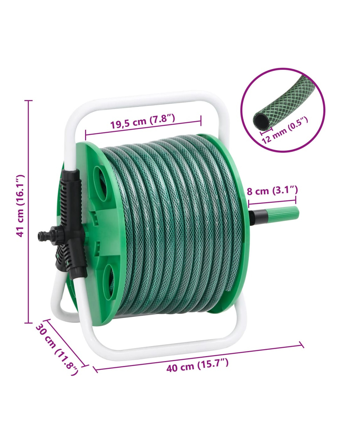 - Conserva fino a 45 m di tubo da giardino da 1/2"