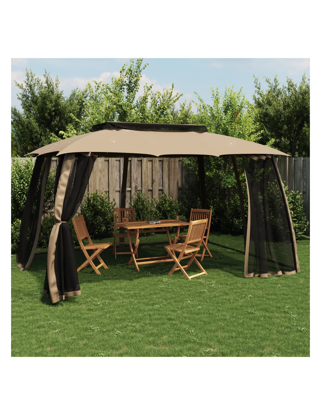 - Ampio spazio: Il gazebo è abbastanza grande da ospitare la famiglia e gli ospiti. Siete anche liberi di aggiungere tavoli da pranzo al suo interno.