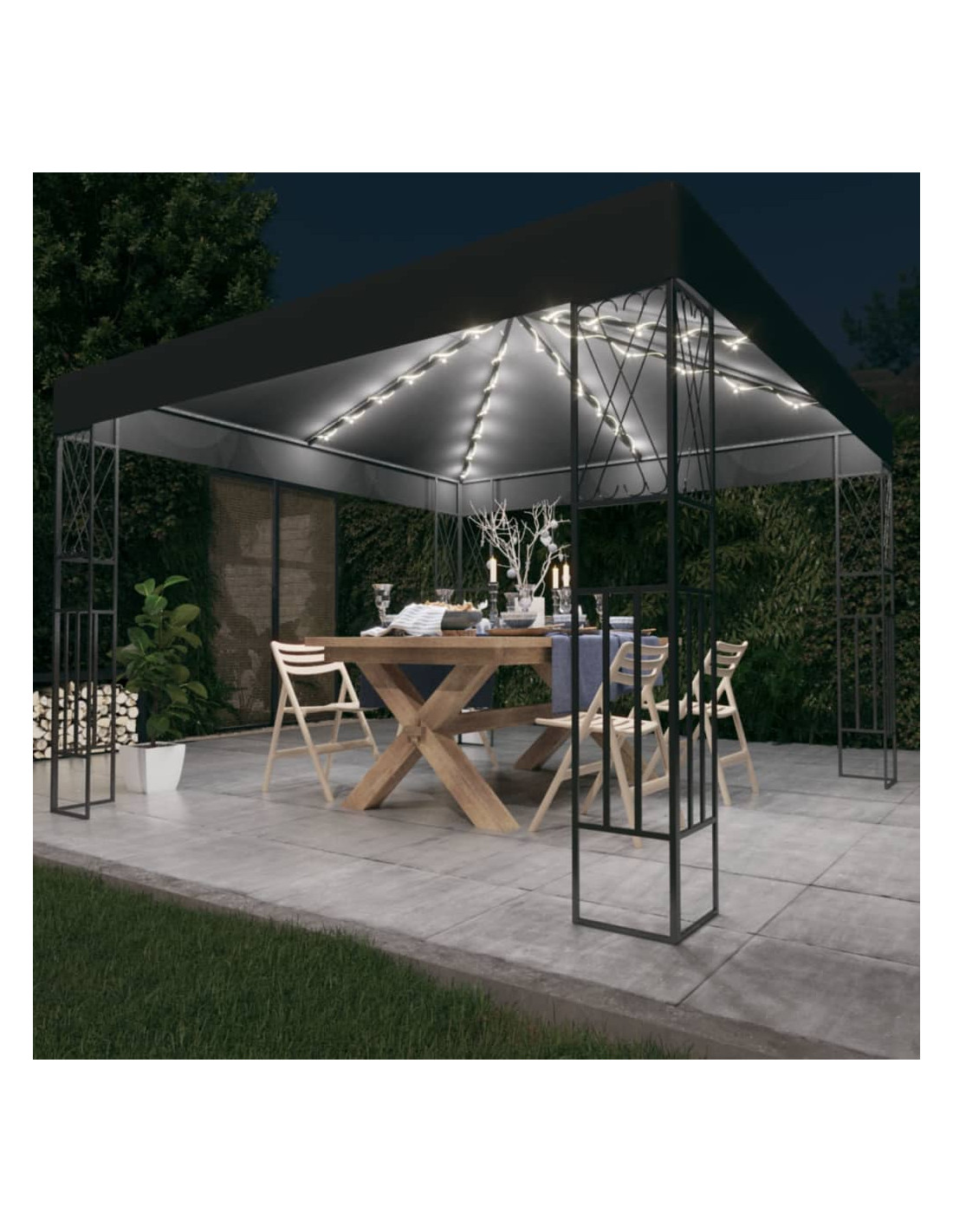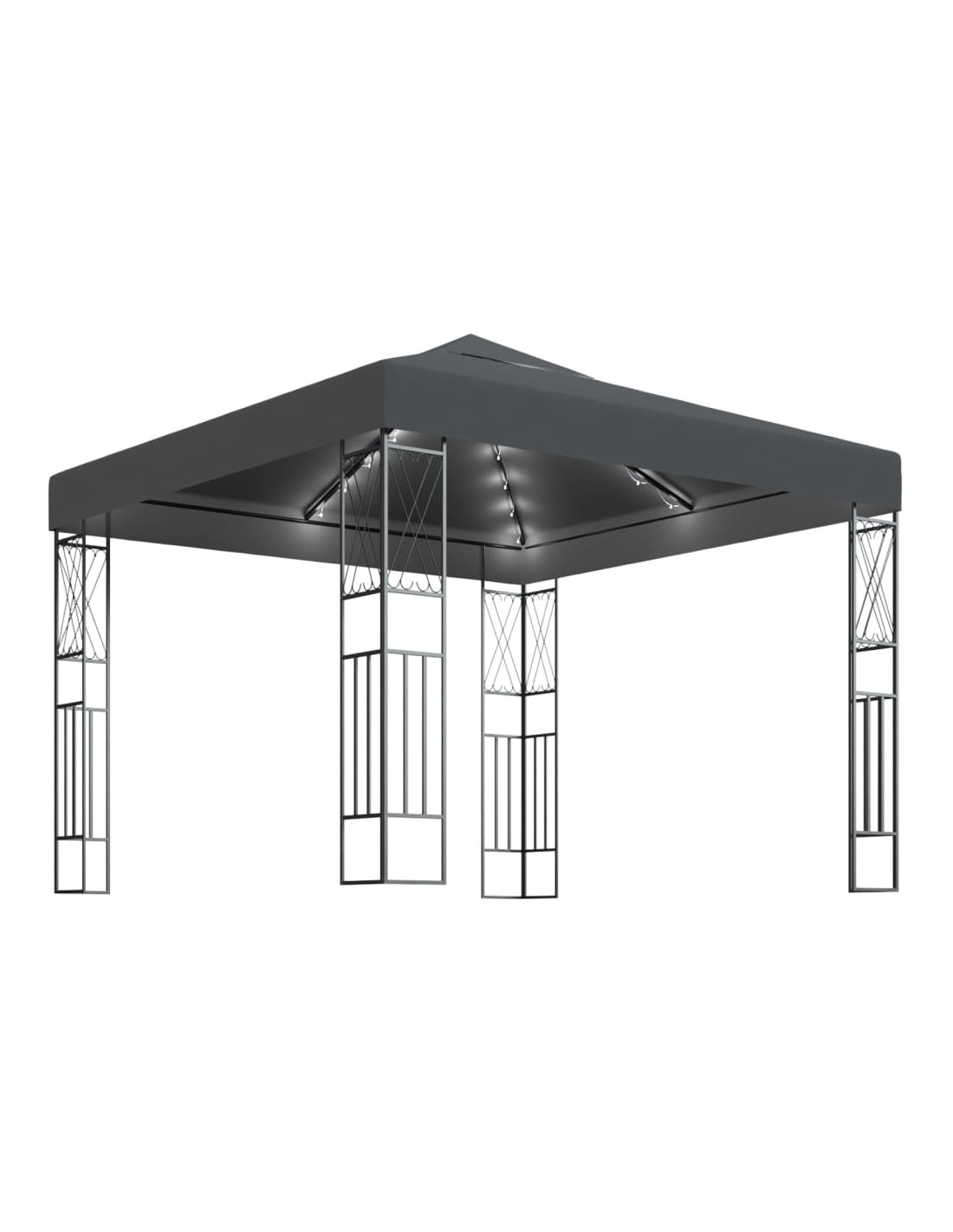 Questo ampio gazebo sarà un'aggiunta elegante al vostro spazio abitativo all'aperto, mantenendo la famiglia e gli ospiti al fresco e all'ombra nelle giornate di sole. Il baldacchino ventilato impedirà al sole e alla pioggia di rovinare il divertimento durante le riunioni di famiglia, i barbecue, i picnic pomeridiani e le feste di compleanno. Il gazebo ha una robusta struttura in acciaio con dettagli decorativi a forma di croce e un tetto in poliestere. Il baldacchino può essere facilmente fissato al telaio in acciaio. Inoltre, la luce della stringa crea un'atmosfera accogliente nel vostro giardino quando il sole tramonta. Le luci non inquinano l'ambiente in quanto vengono caricate dall'energia solare durante il giorno. NOTA: Questo prodotto non deve MAI essere utilizzato in caso di maltempo come vento forte, pioggia battente, neve, tempesta, ecc.