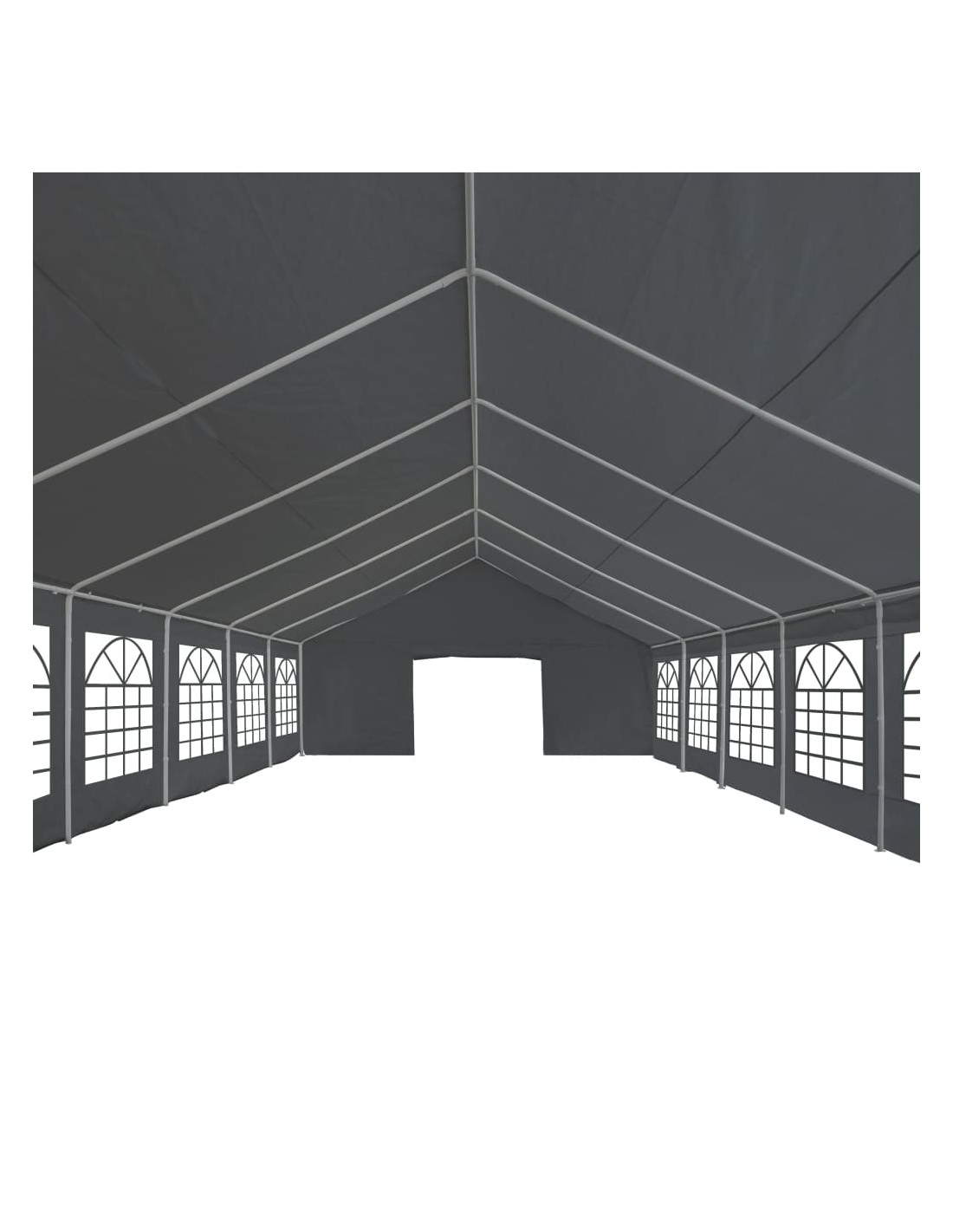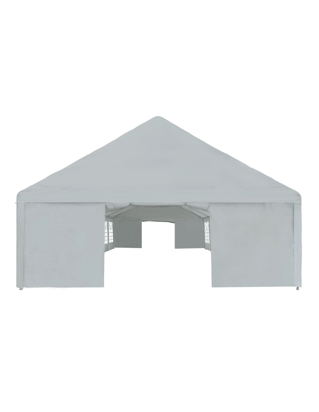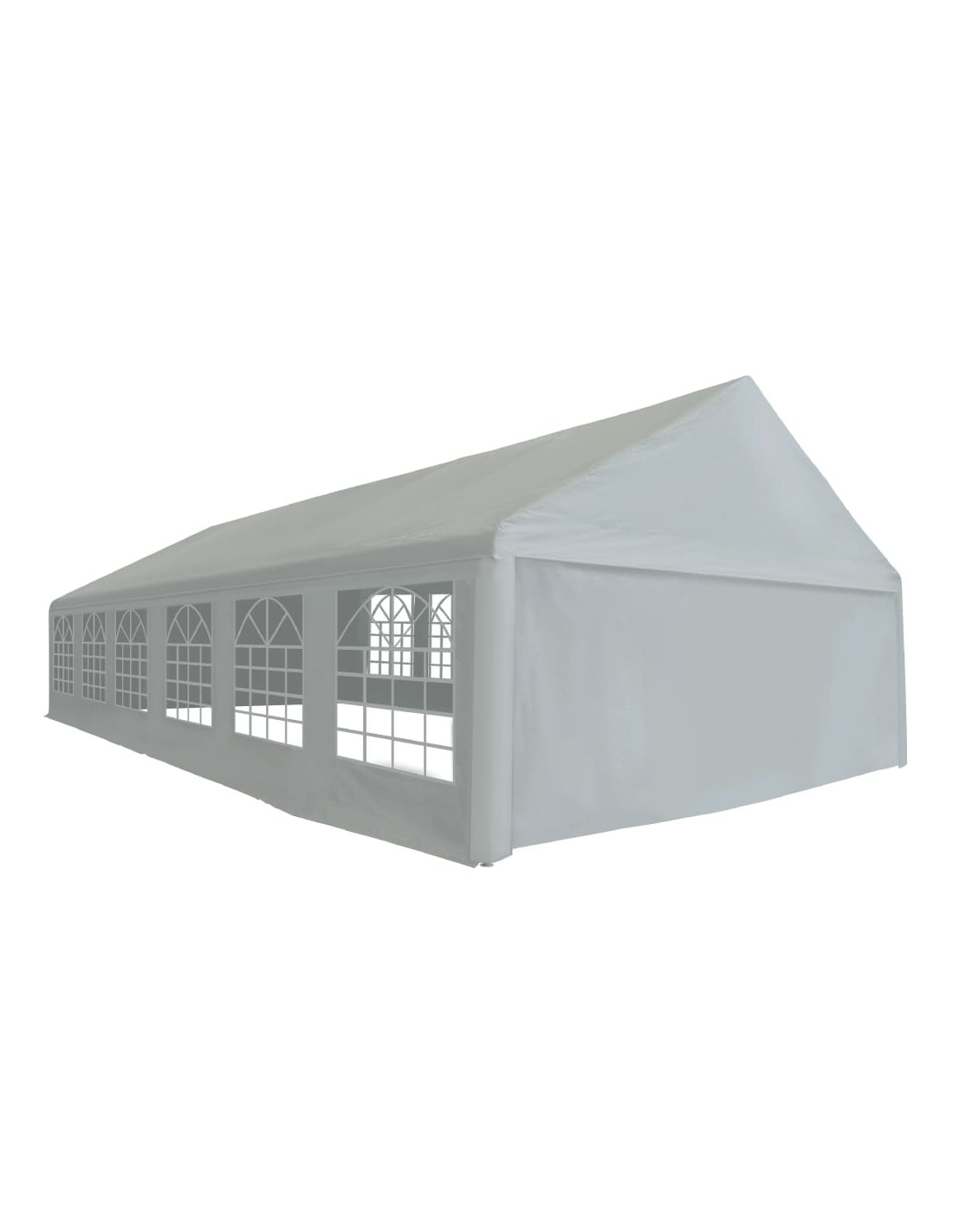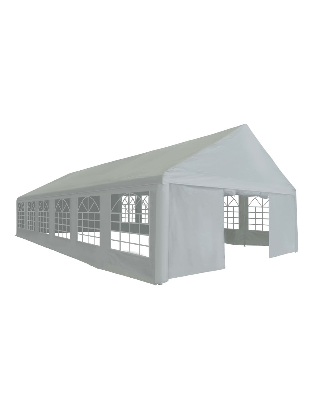 Realizzata al 100% in PE, la copertura e i pannelli laterali della tenda da festa sono resistenti all'acqua. I pannelli laterali hanno grandi finestre decorative. Due pannelli delle porte alle due estremità della tenda possono essere arrotolati per facilitare l'ingresso. Il telaio è realizzato in acciaio resistente alla ruggine e quindi estremamente durevole. L'assemblaggio è semplice.