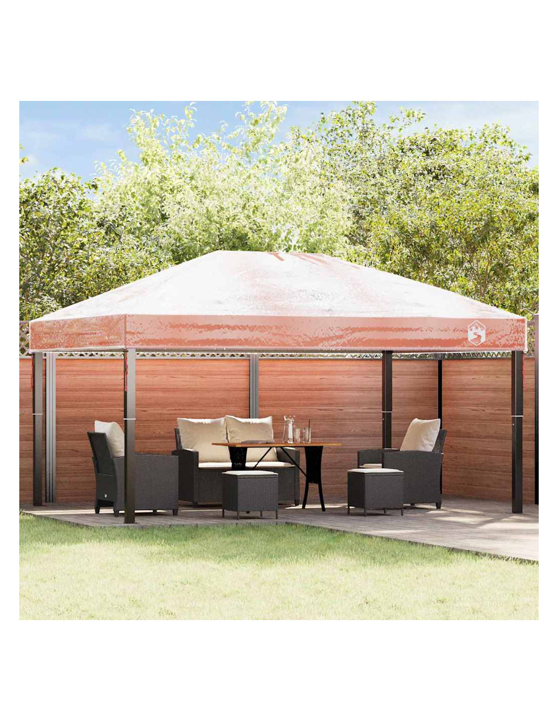 - Componenti e installazione Arrivando già pronta all'uso, la copertura per gazebo rende tutto più semplice, senza bisogno di assemblaggio extra. Questo prodotto rende l'aggiornamento della tua tenda esistente facile e senza stress, massimizzando la comodità per tutti.