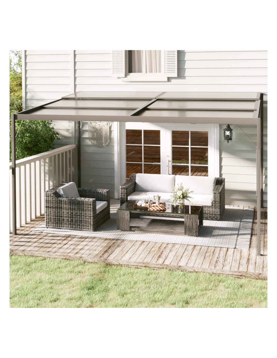 - Telaio robusto: Realizzata in alluminio e acciaio, questa tettoia da giardino è stabile e resistente.