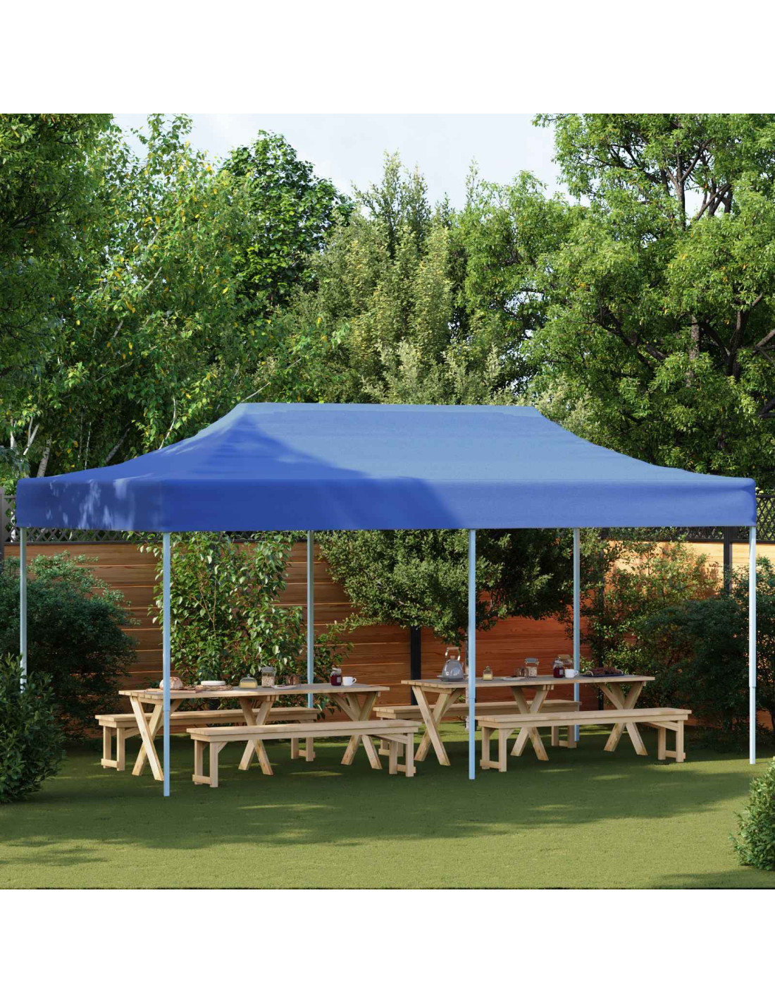 - Tessuto Oxford resistente all'acqua Realizzato in tessuto Oxford, questo gazebo offre un riparo sicuro da piogge inaspettate e sole cocente. Anche se è resistente all'acqua e garantisce un certo comfort, non è consigliabile usarlo in caso di maltempo intenso. Grazie alla sua qualità, mantiene colori e funzionalità nel tempo, rendendolo essenziale per eventi all'aperto.